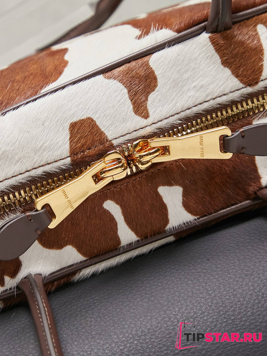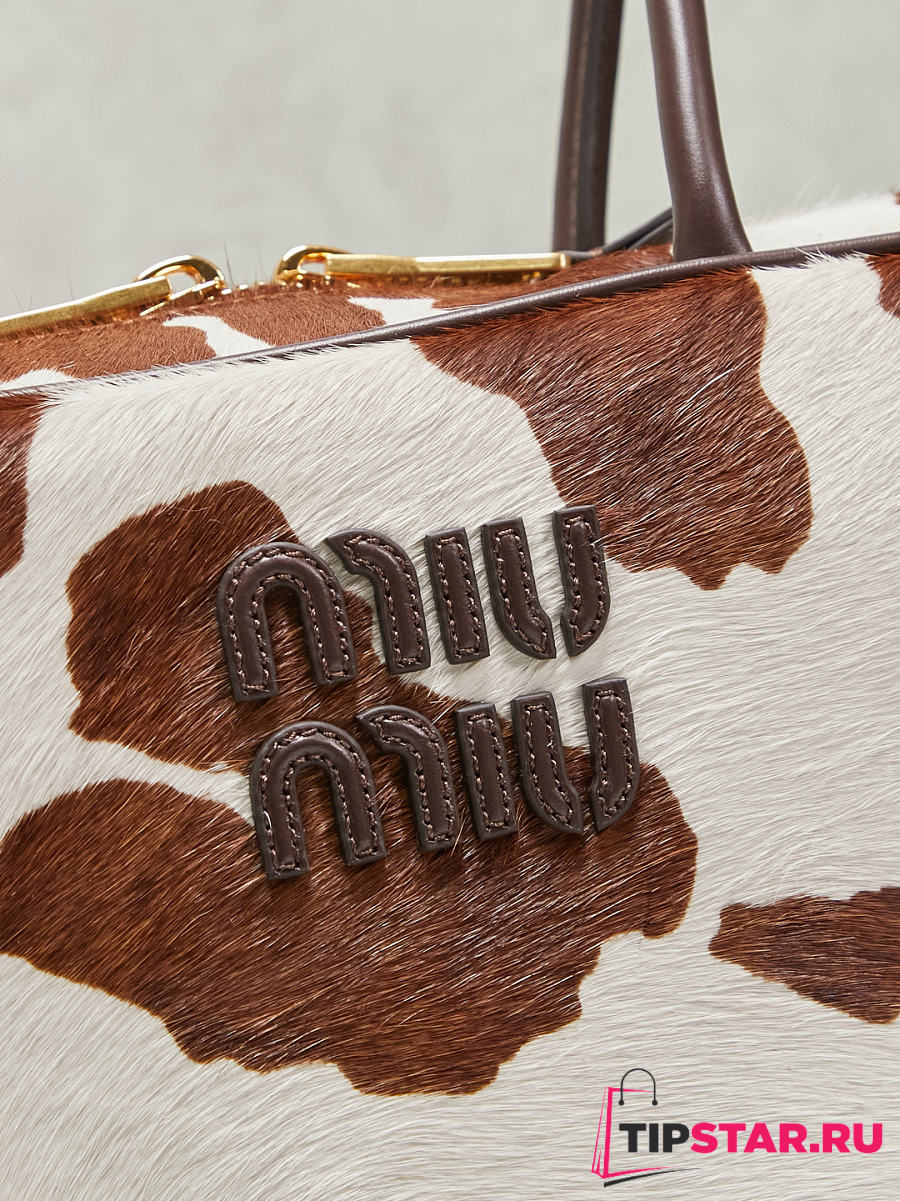 Miumiu Beau Medium calf hair shoulder bag White/Burnt Sienna