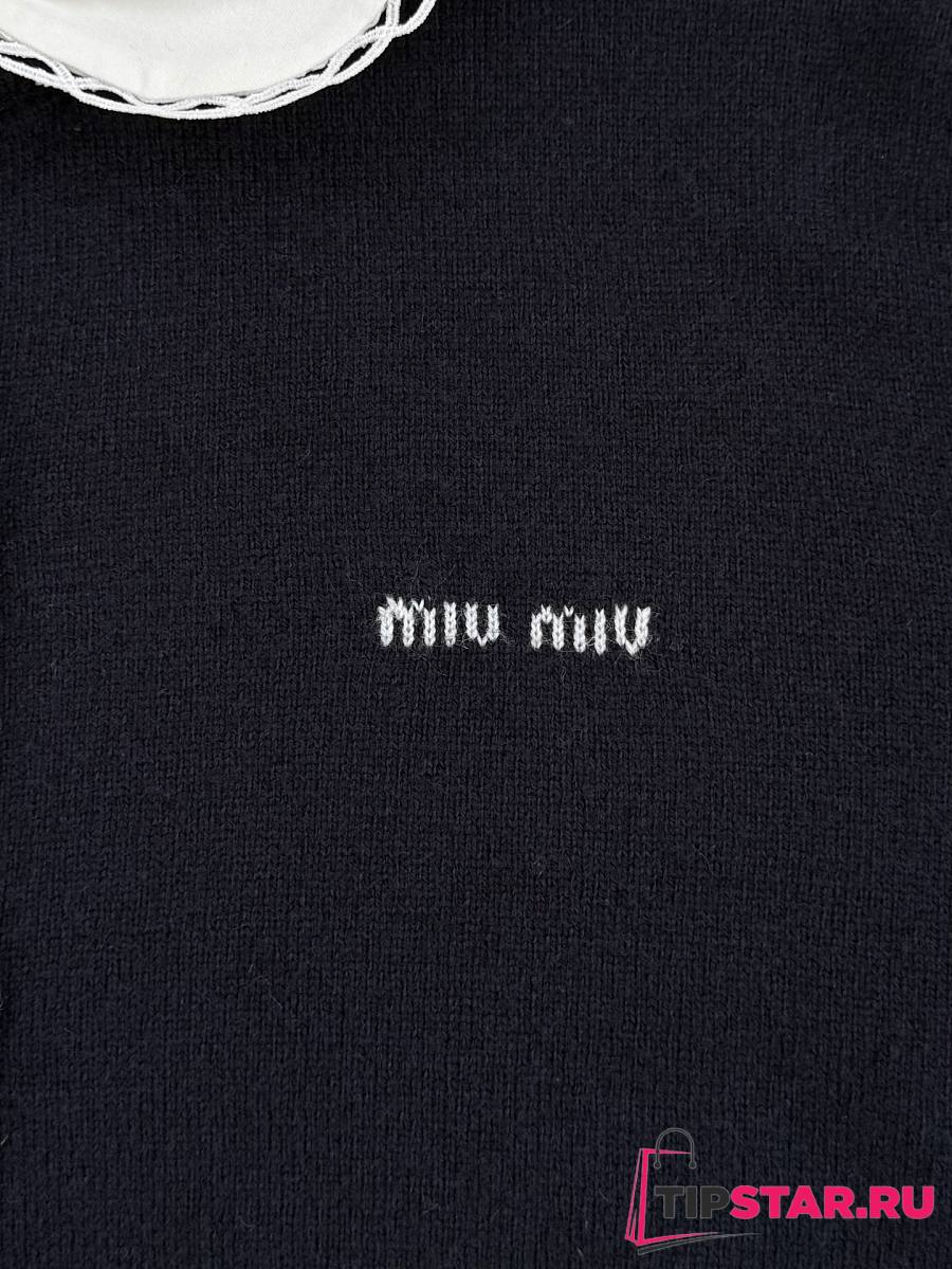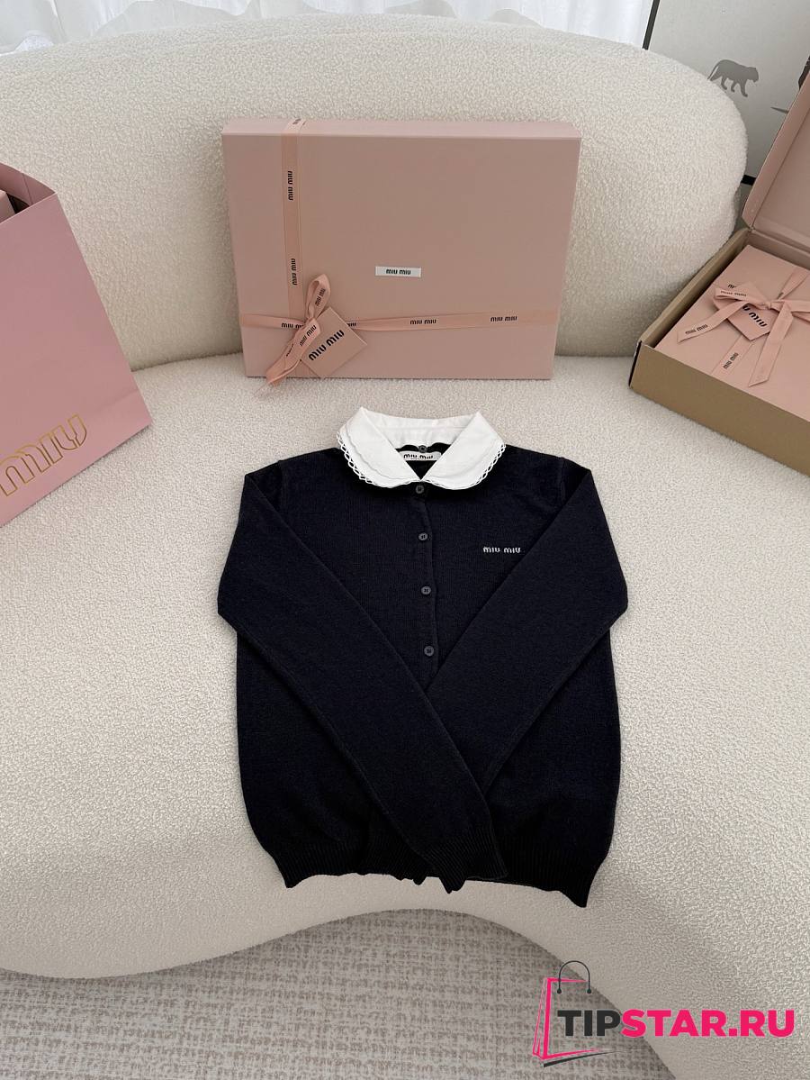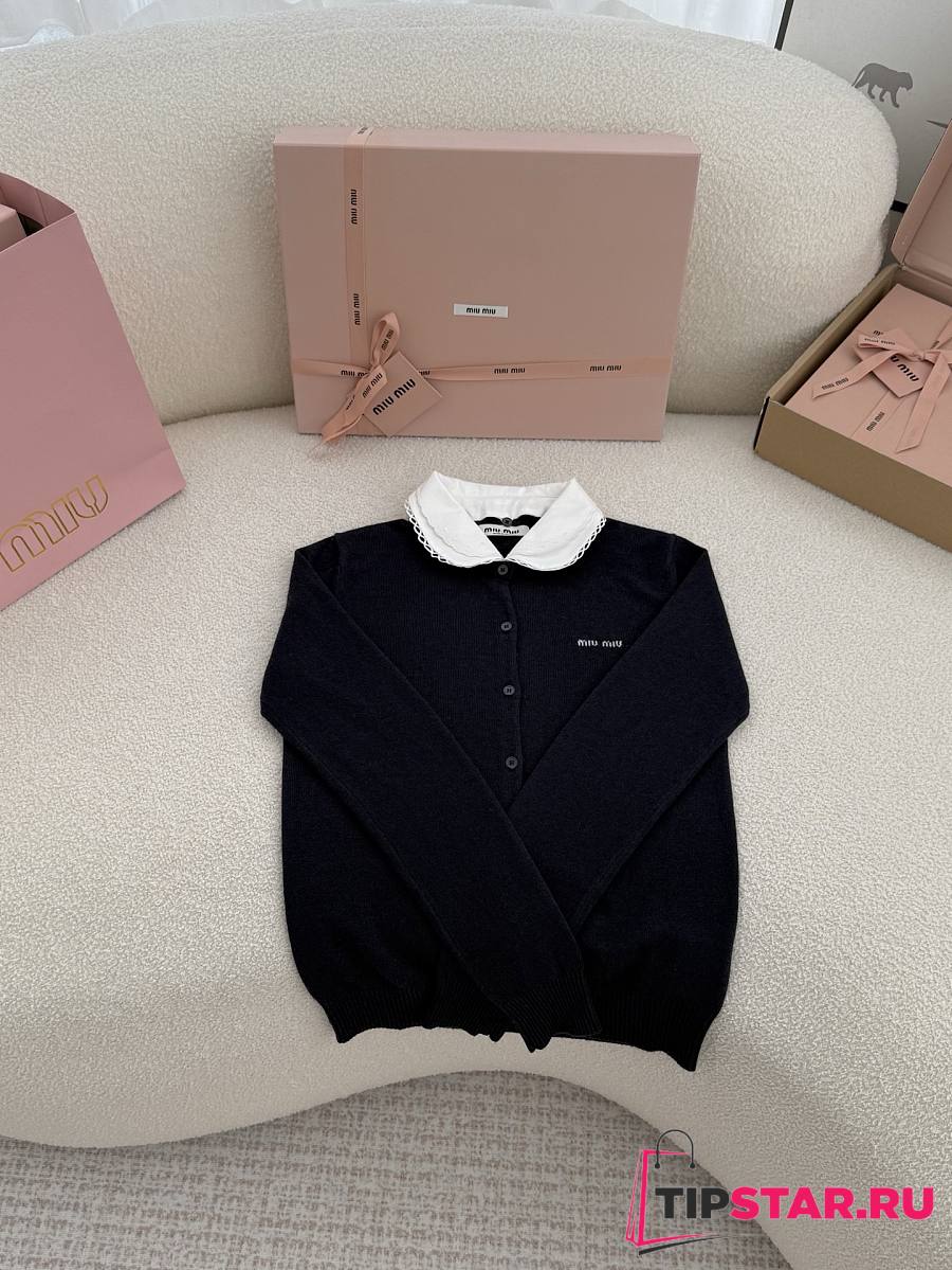 Miumiu Cashmere Cardigan With Embroidered Poplin Collar Black