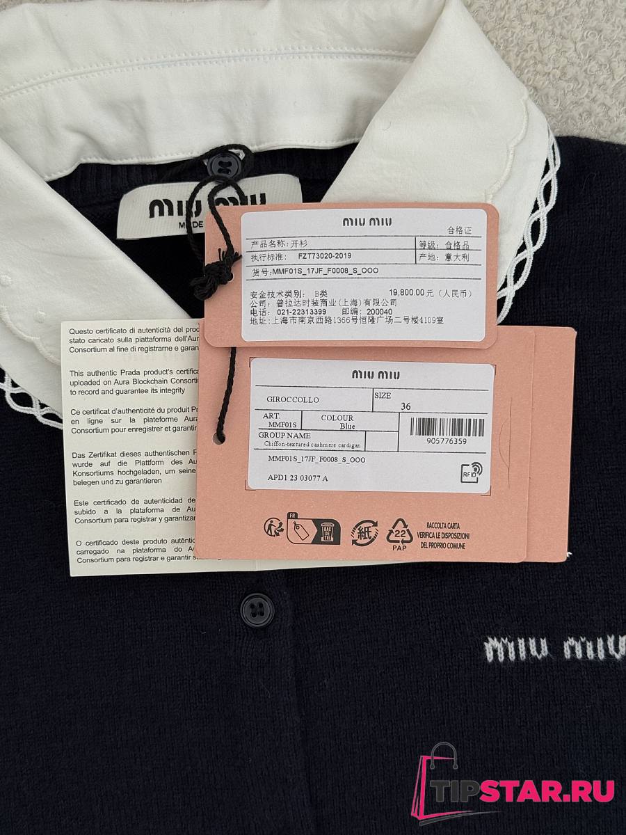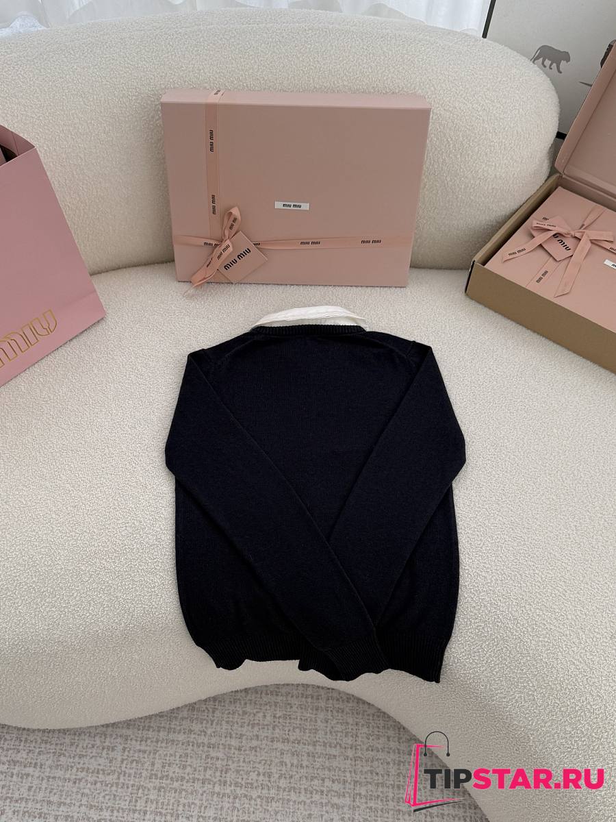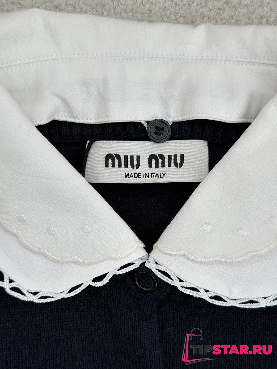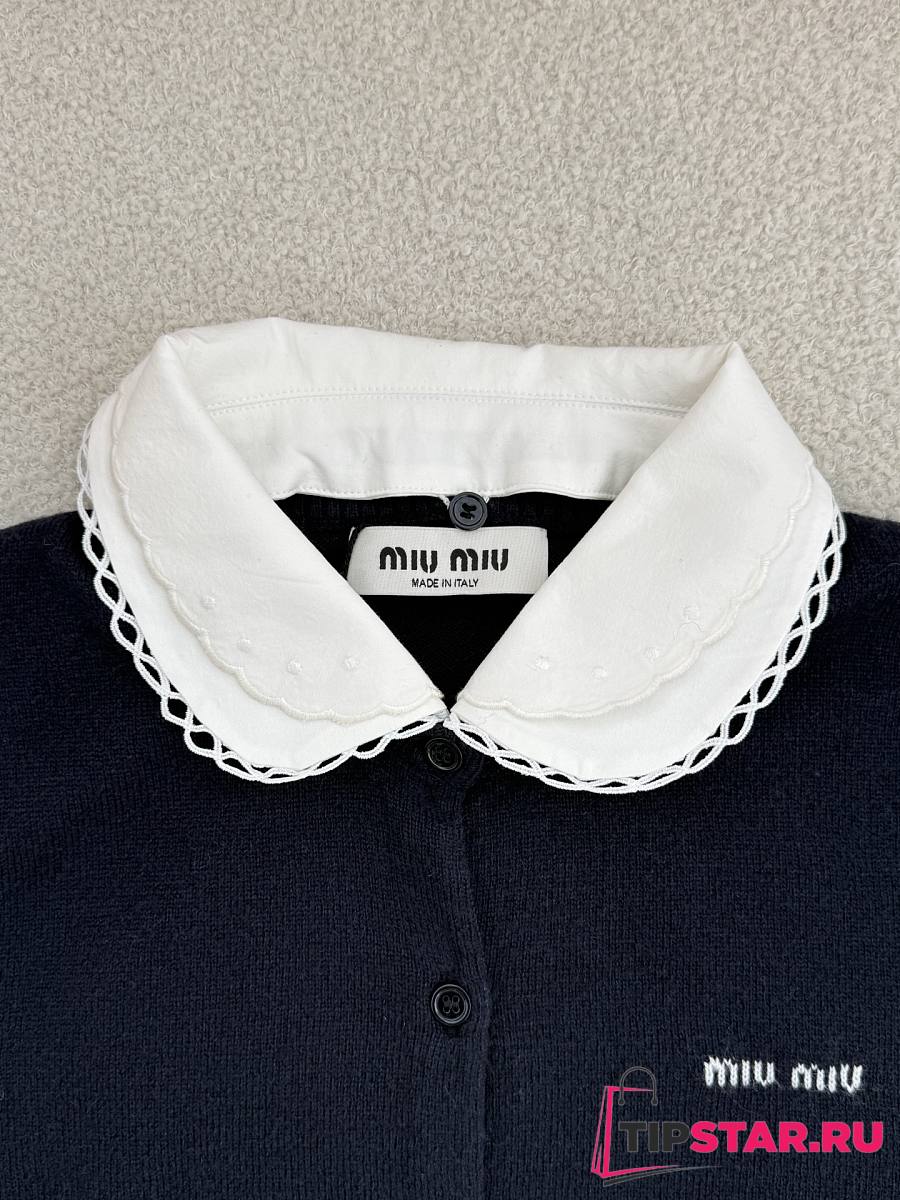 Miumiu Cashmere Cardigan With Embroidered Poplin Collar Black
