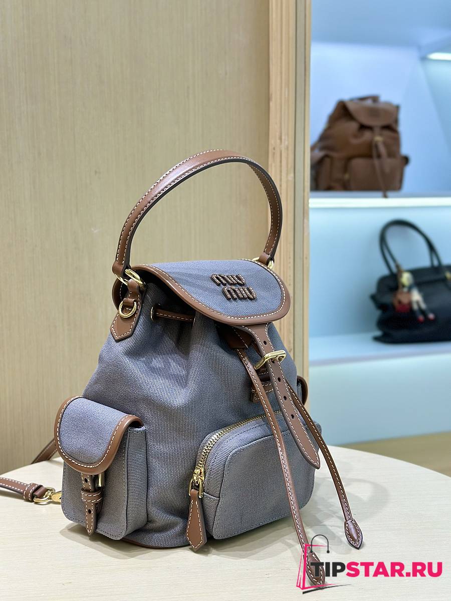 Miumiu Medium Canvas and leather backpack Aluminum/Brandy
