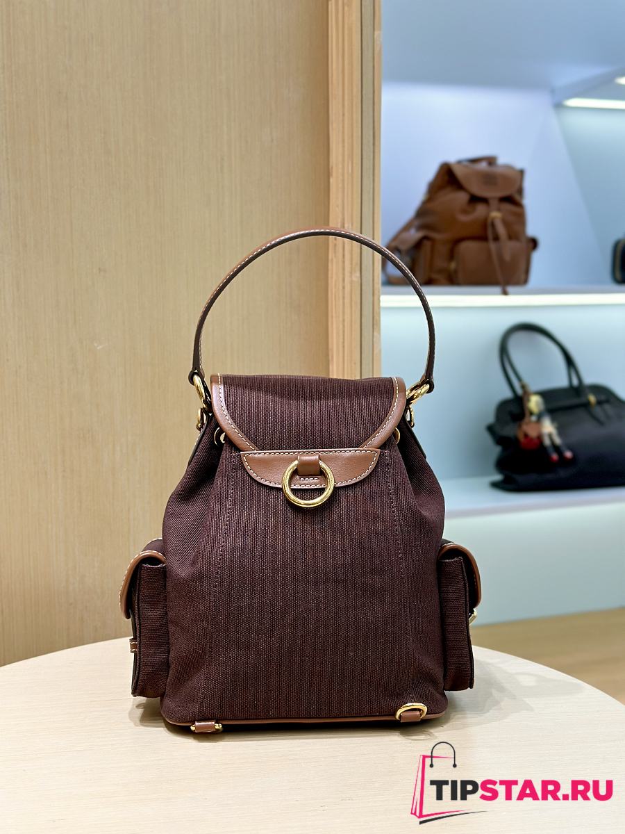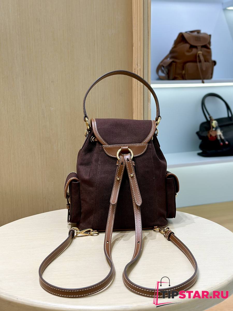 Miumiu Medium Canvas and leather backpack Cocoa Brown/Brandy