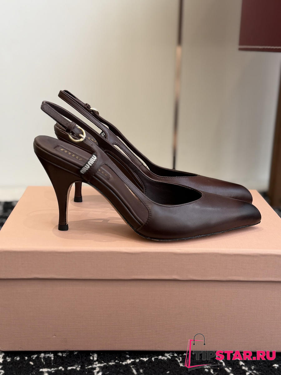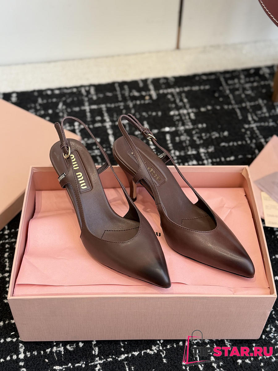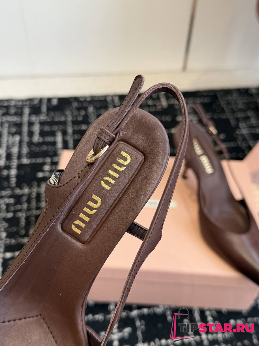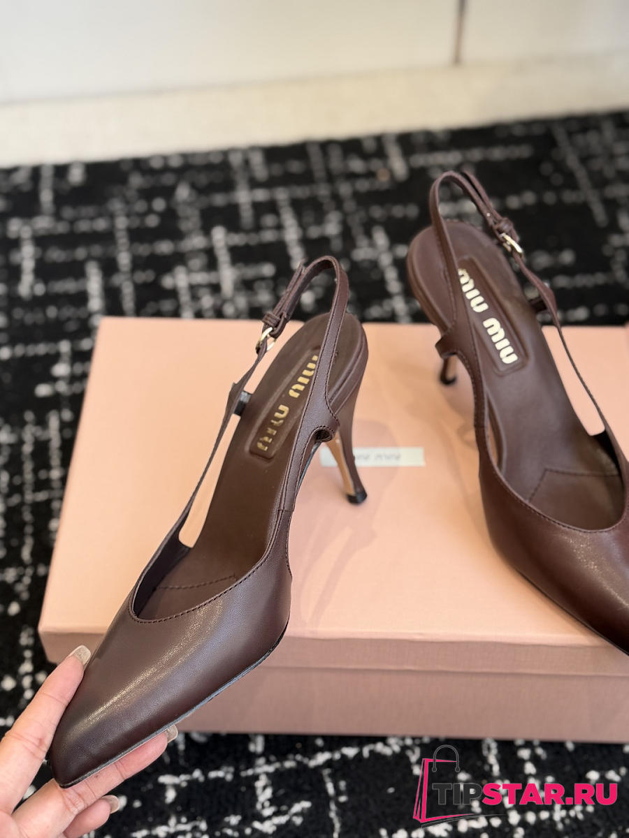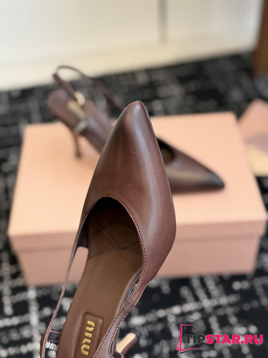 Miumiu Nordstrom Waxed Calfskin Slingback Pump Dark Chocolate Brown