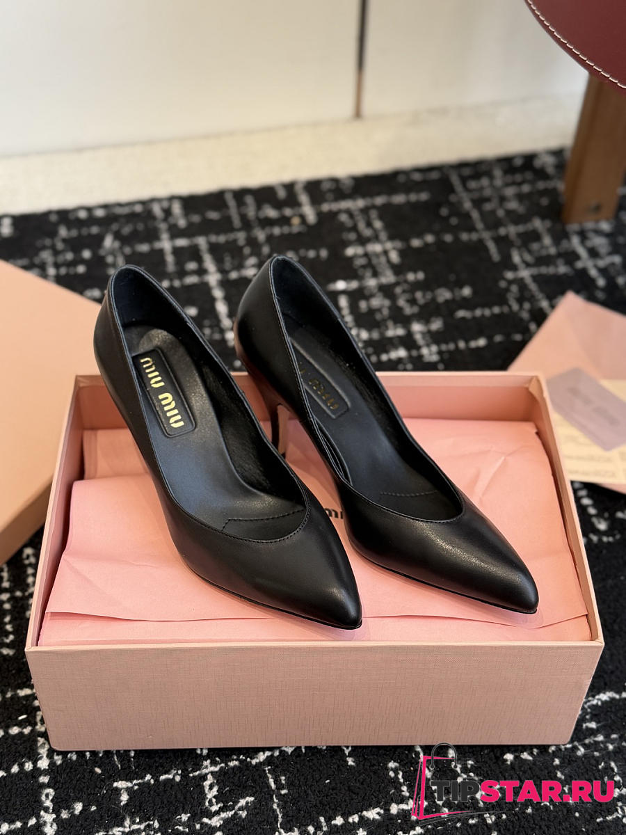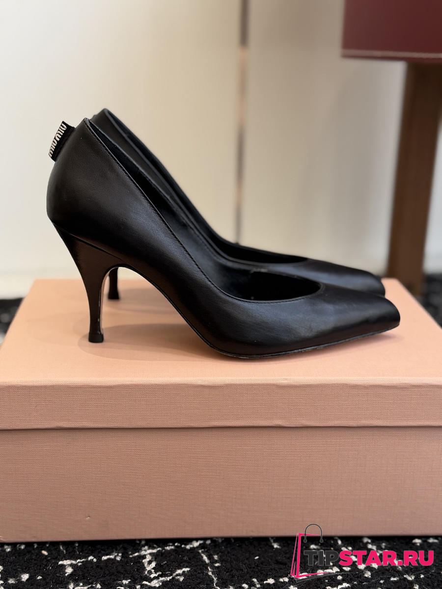 Miumiu Waxed Calfskin Pointy Toe Pump Black