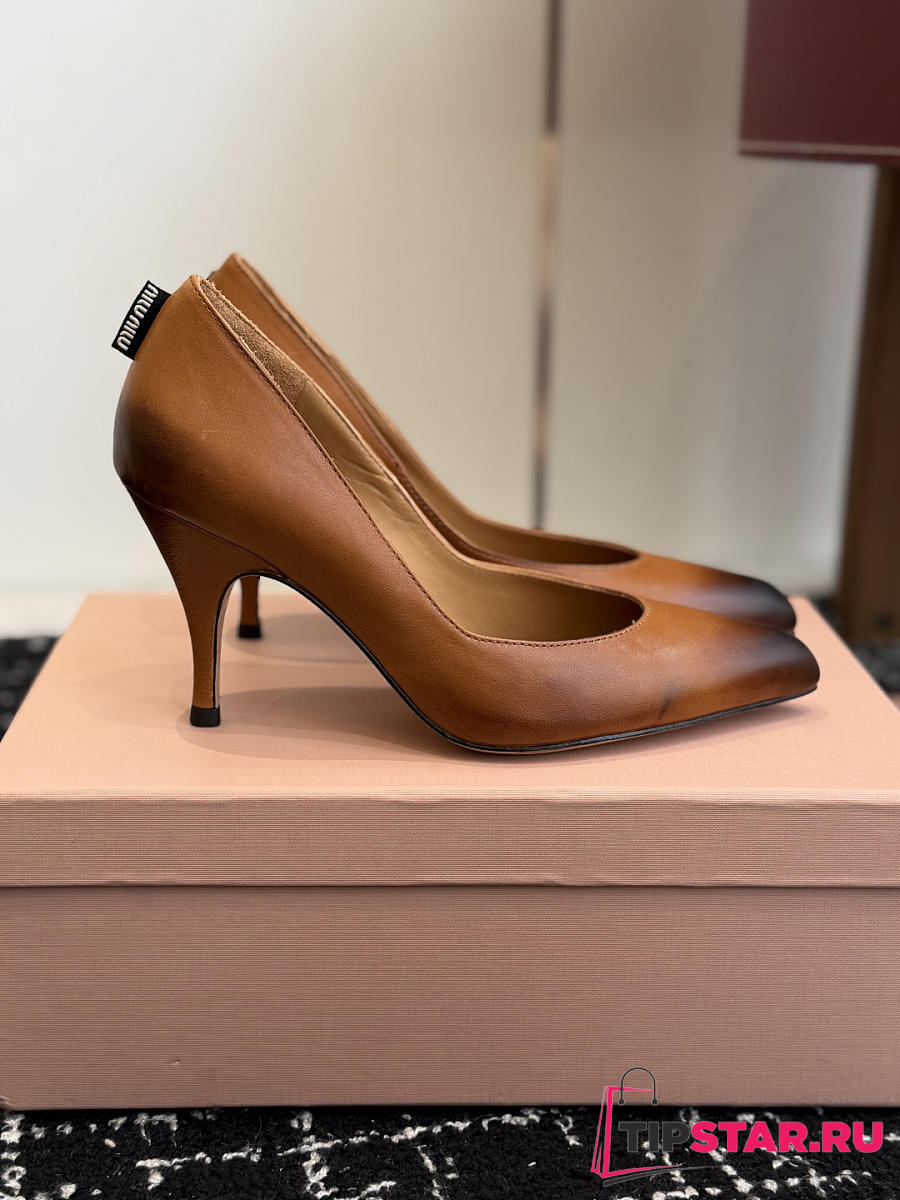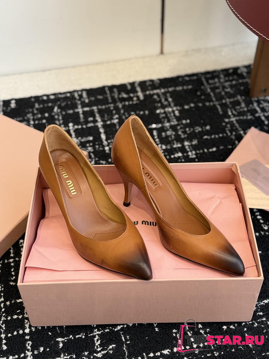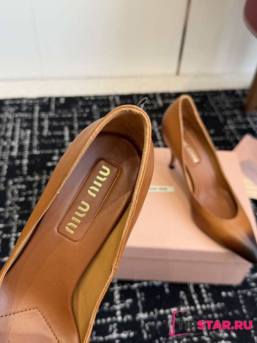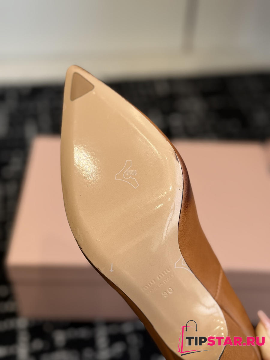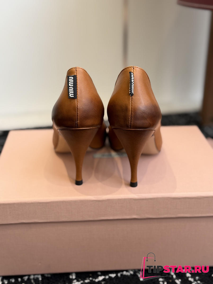 Miumiu Waxed Calfskin Pointy Toe Pump Caramel Brown