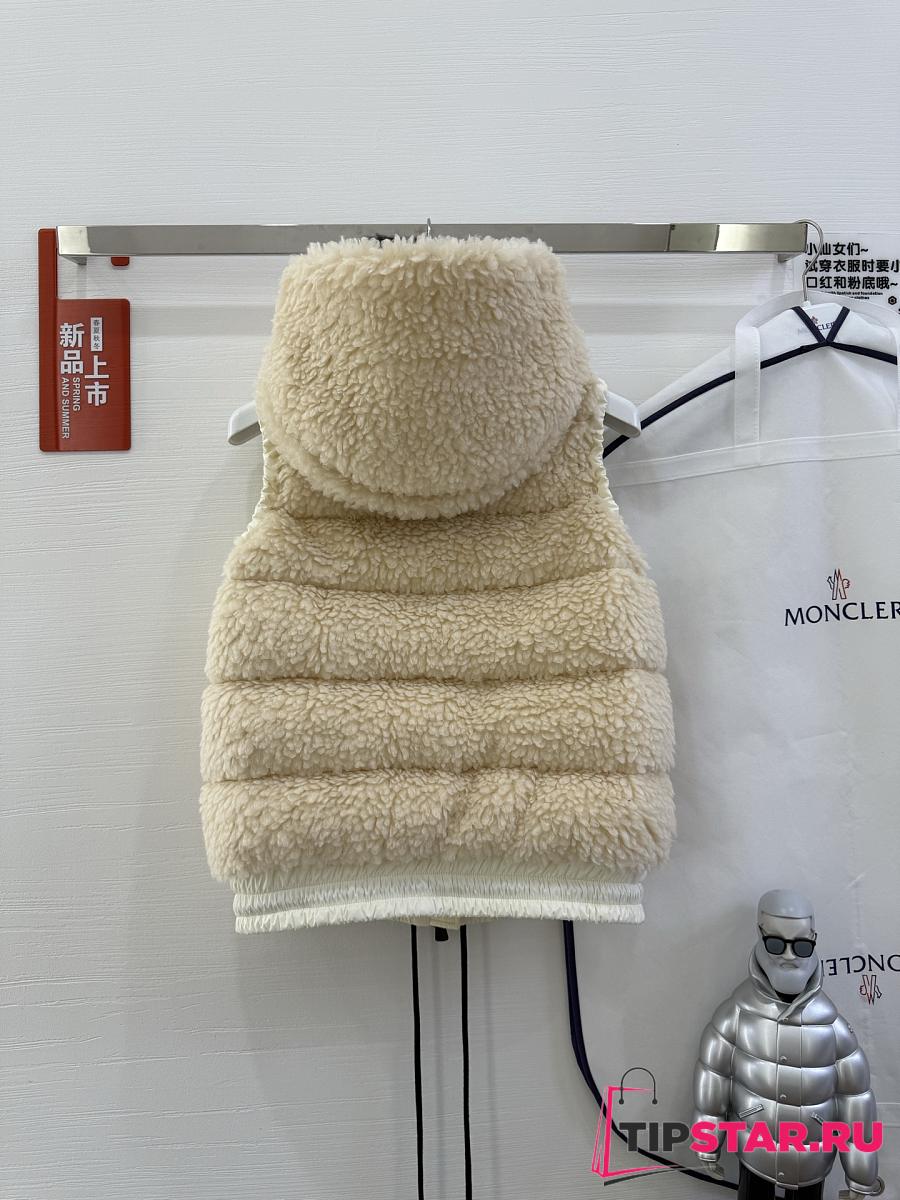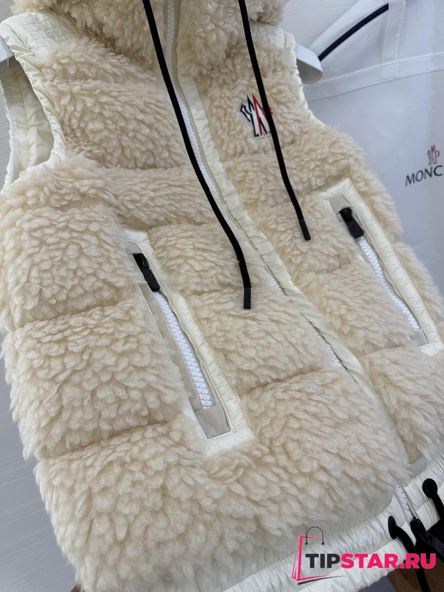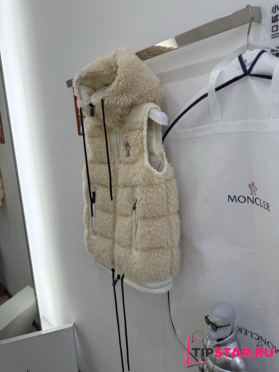 Moncler Classic Teddy Hooded Casual Down Vest In Beige