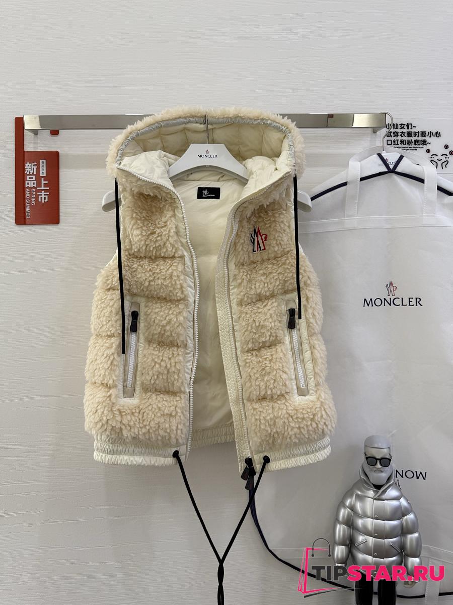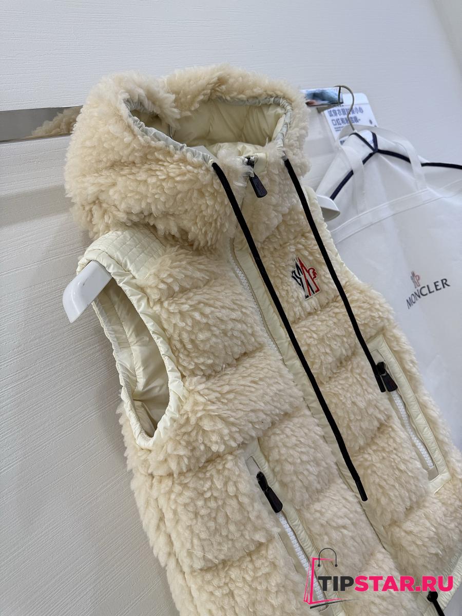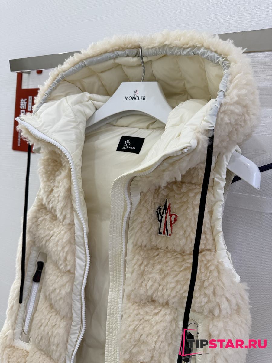 Moncler Classic Teddy Hooded Casual Down Vest In Beige