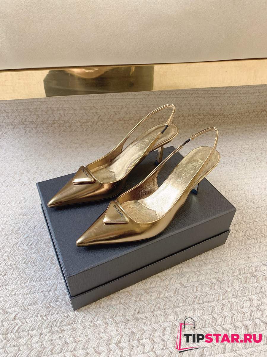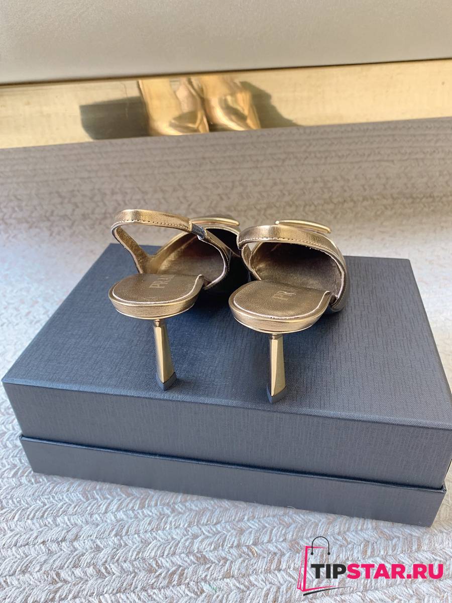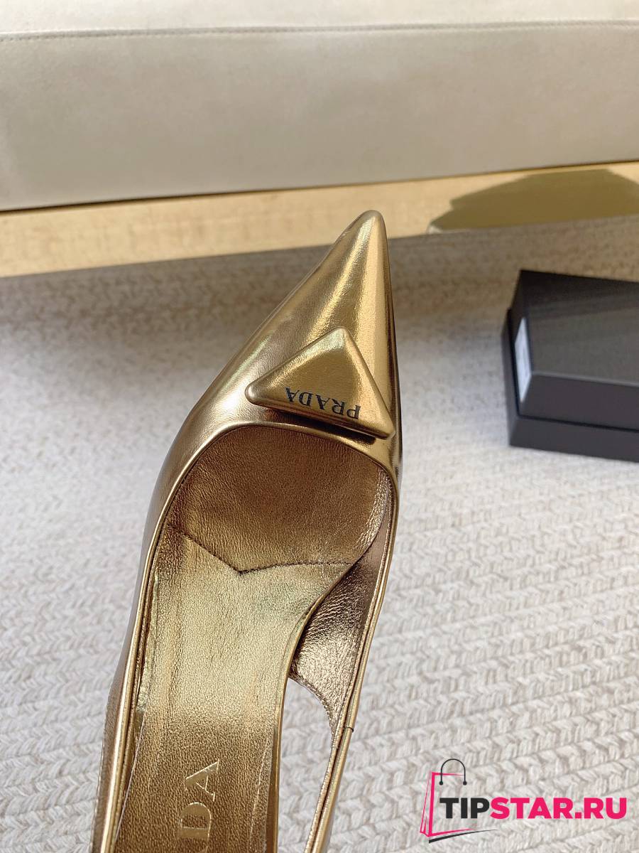 Prada Black Brushed Leather Slingback Pumps Gold