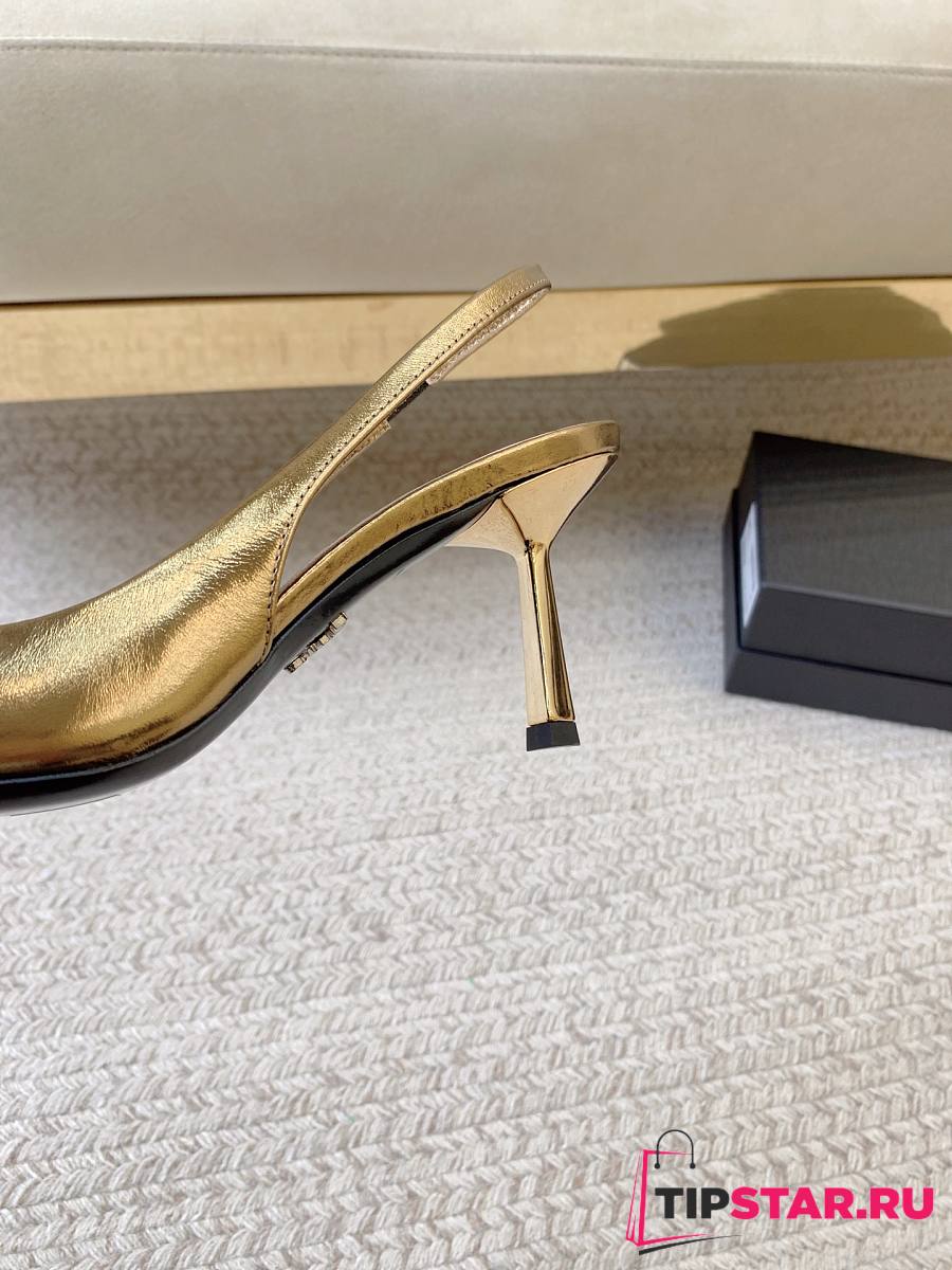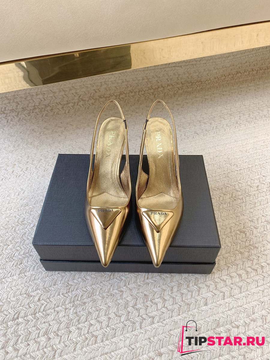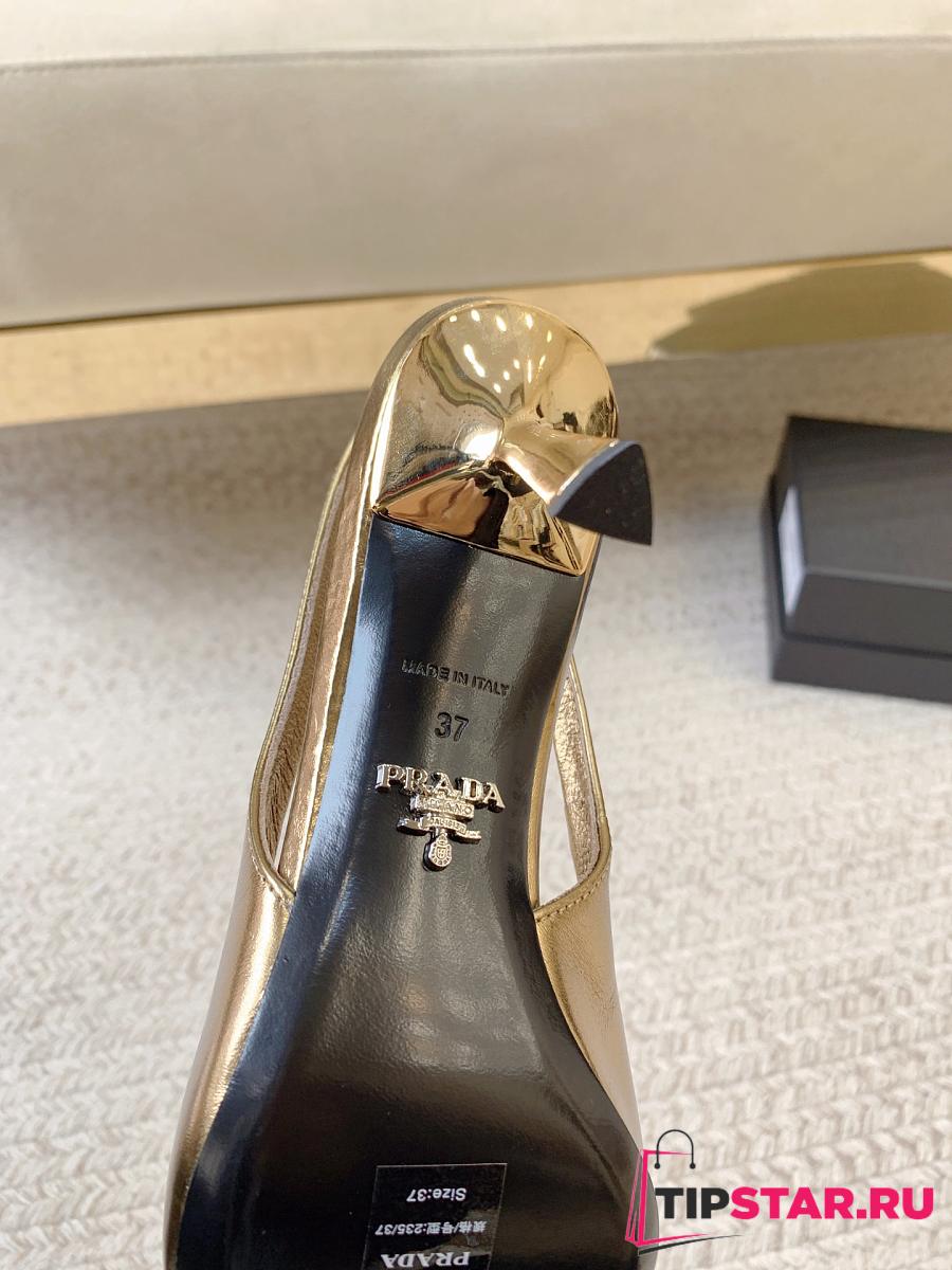 Prada Black Brushed Leather Slingback Pumps Gold