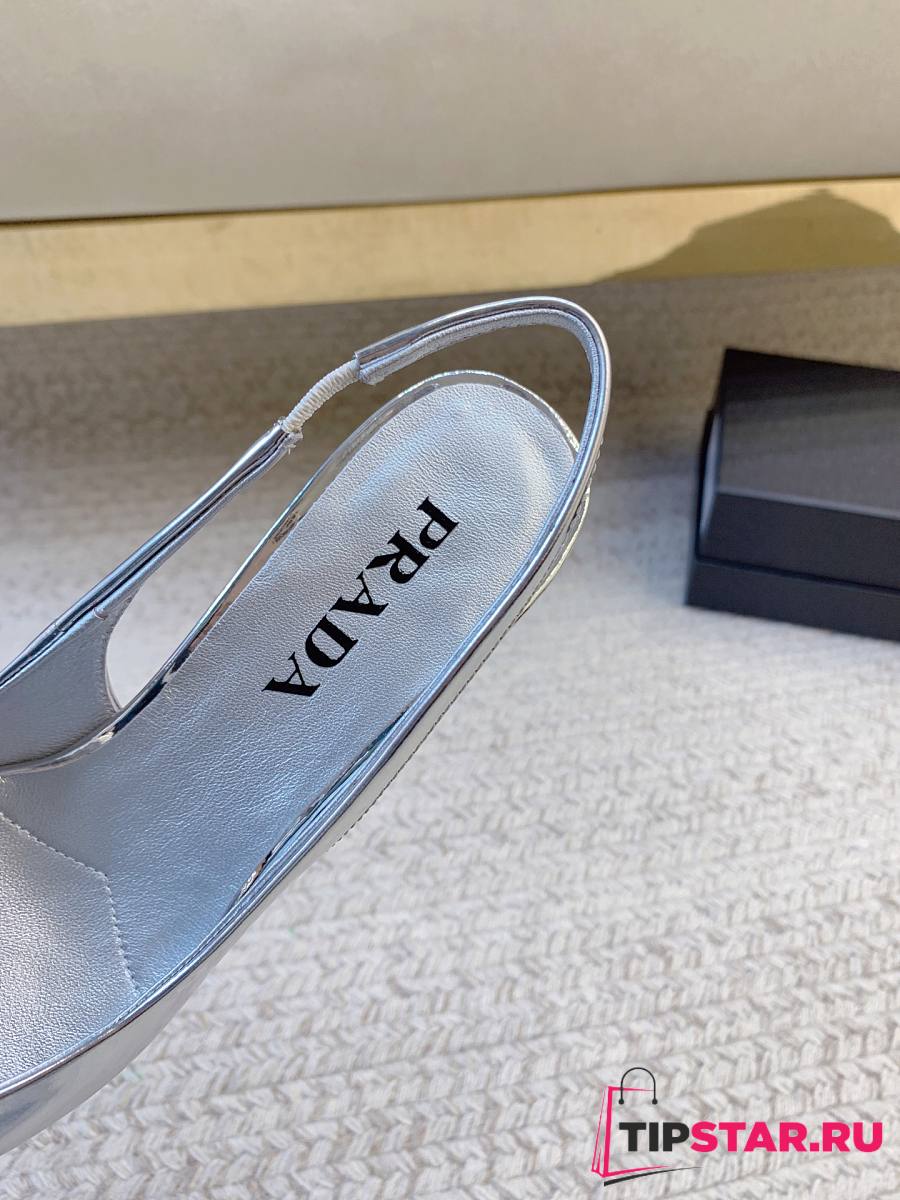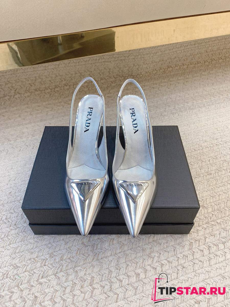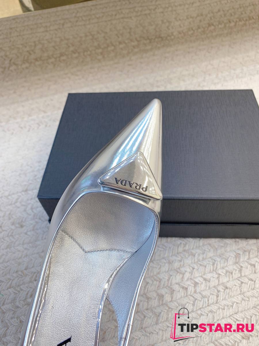 Prada Black Brushed Leather Slingback Pumps Silver