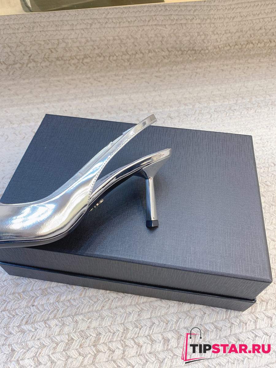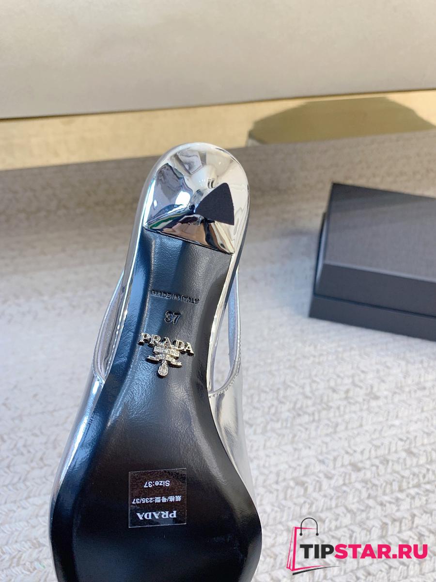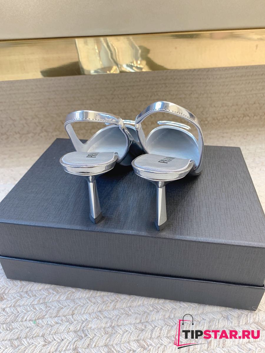 Prada Black Brushed Leather Slingback Pumps Silver