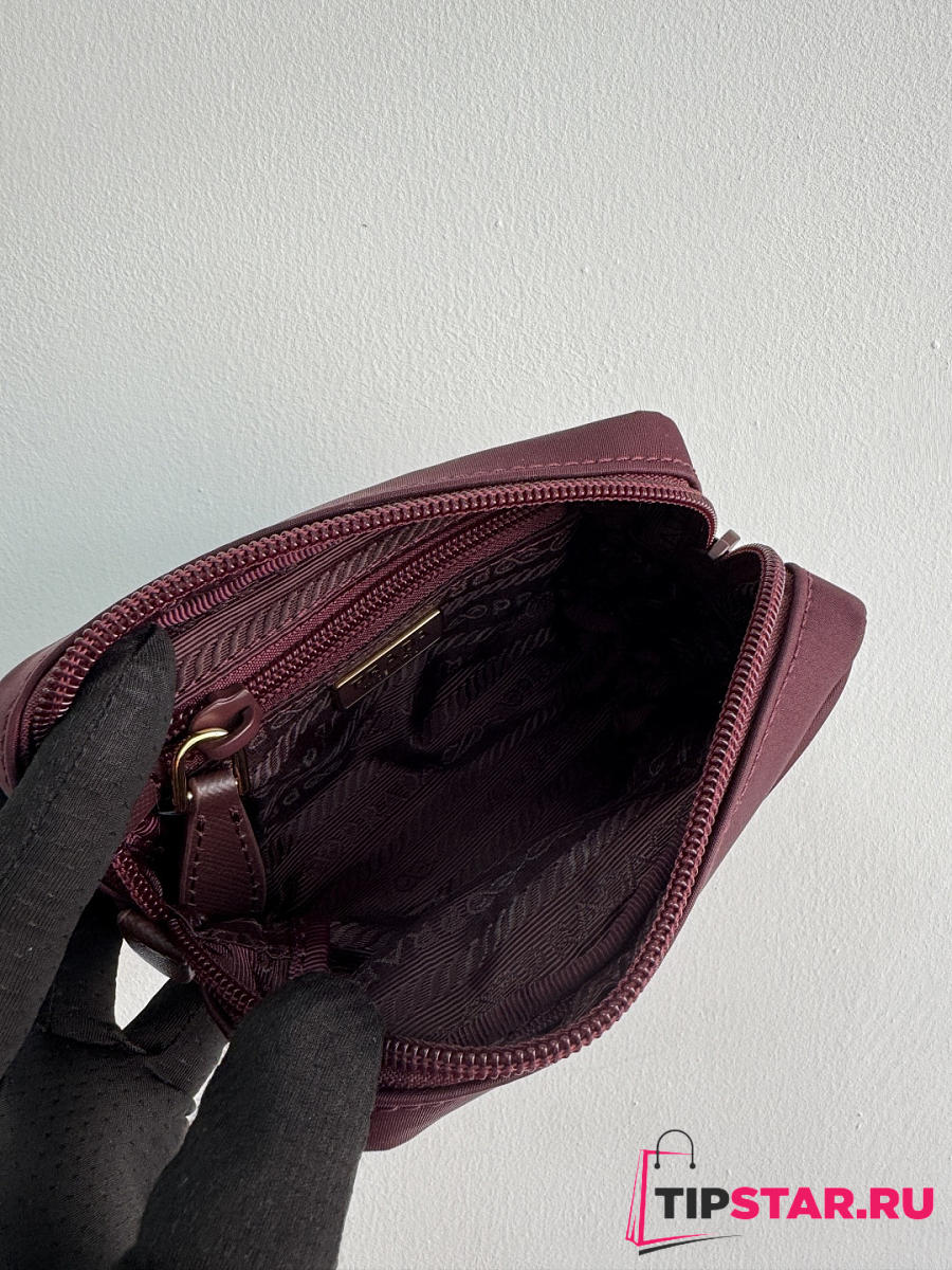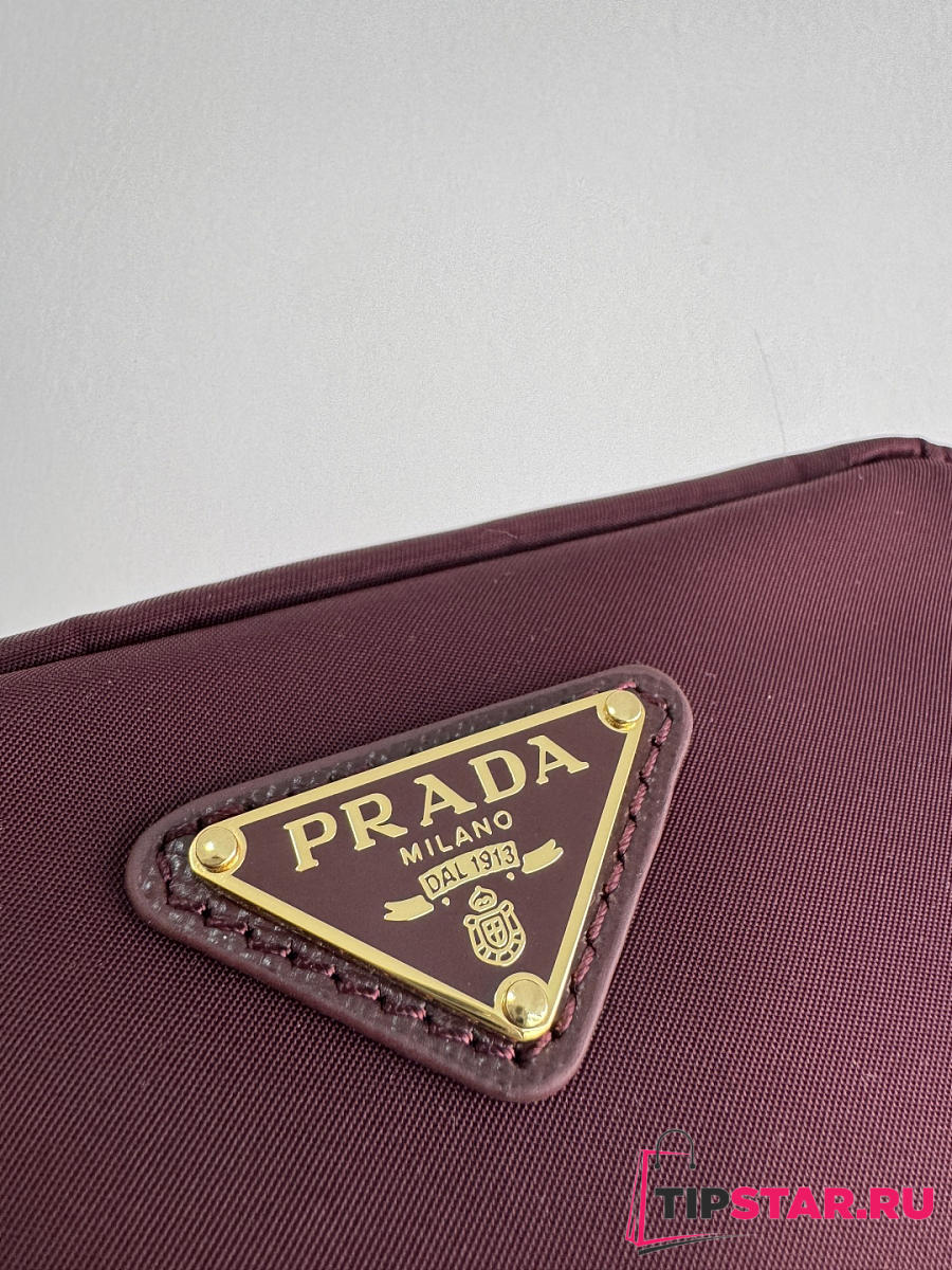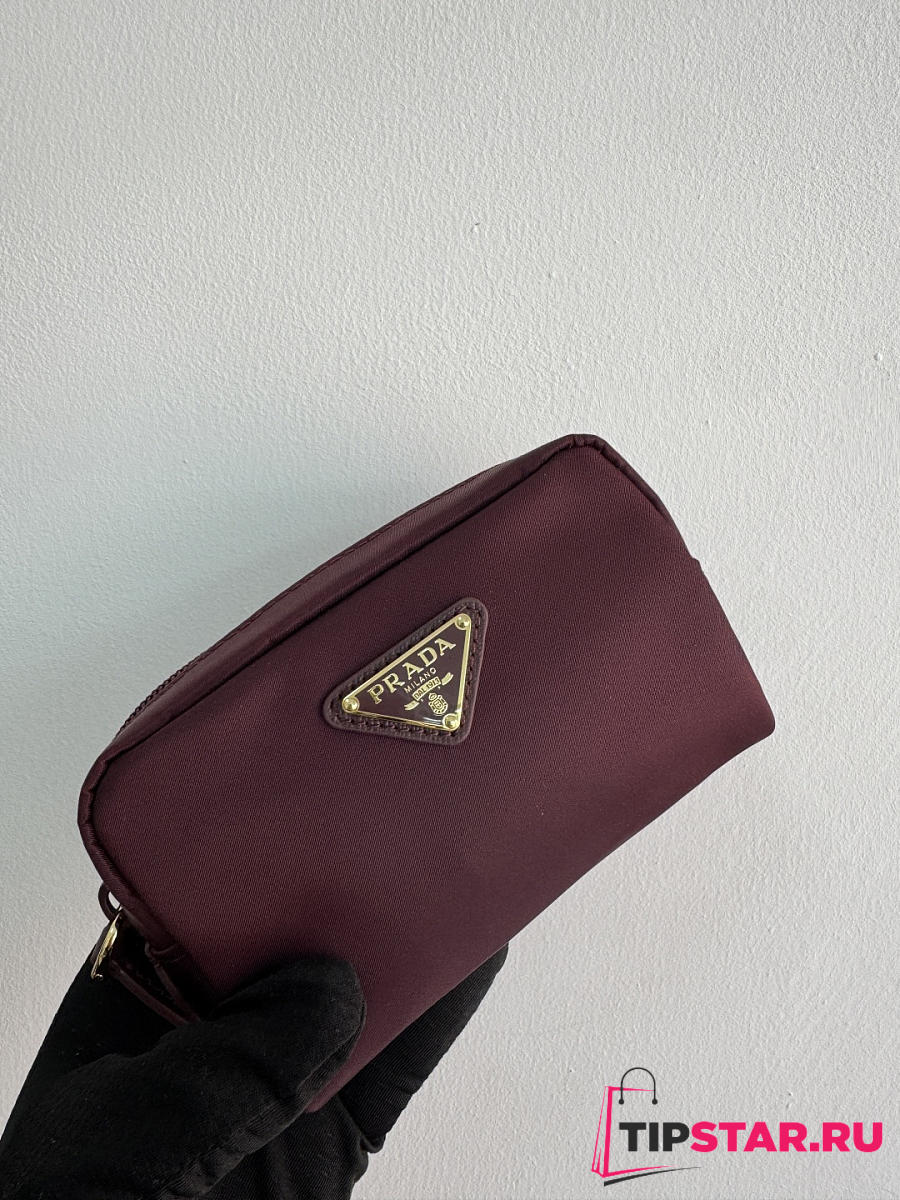 Prada Micro Re-Nylon pouch gold hardware Burgundy
