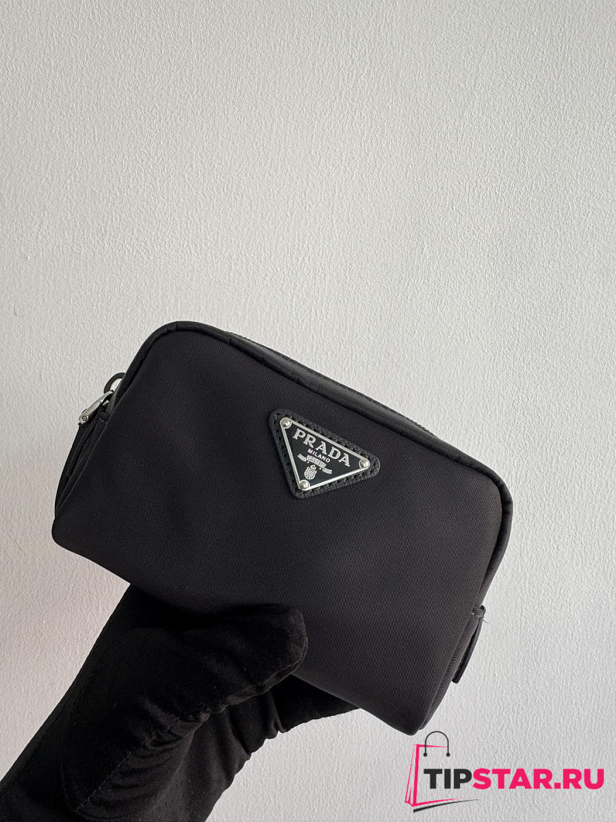 Prada Micro Re-Nylon pouch silver hardware Black