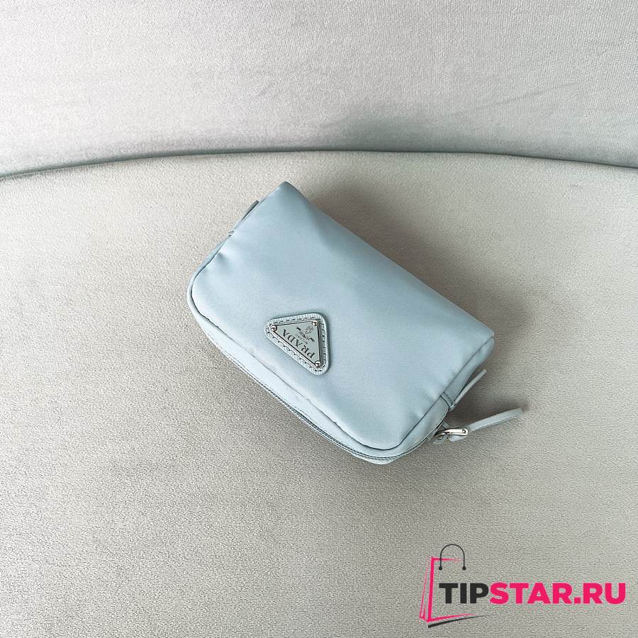 Prada Micro Re-Nylon pouch silver hardware Blue