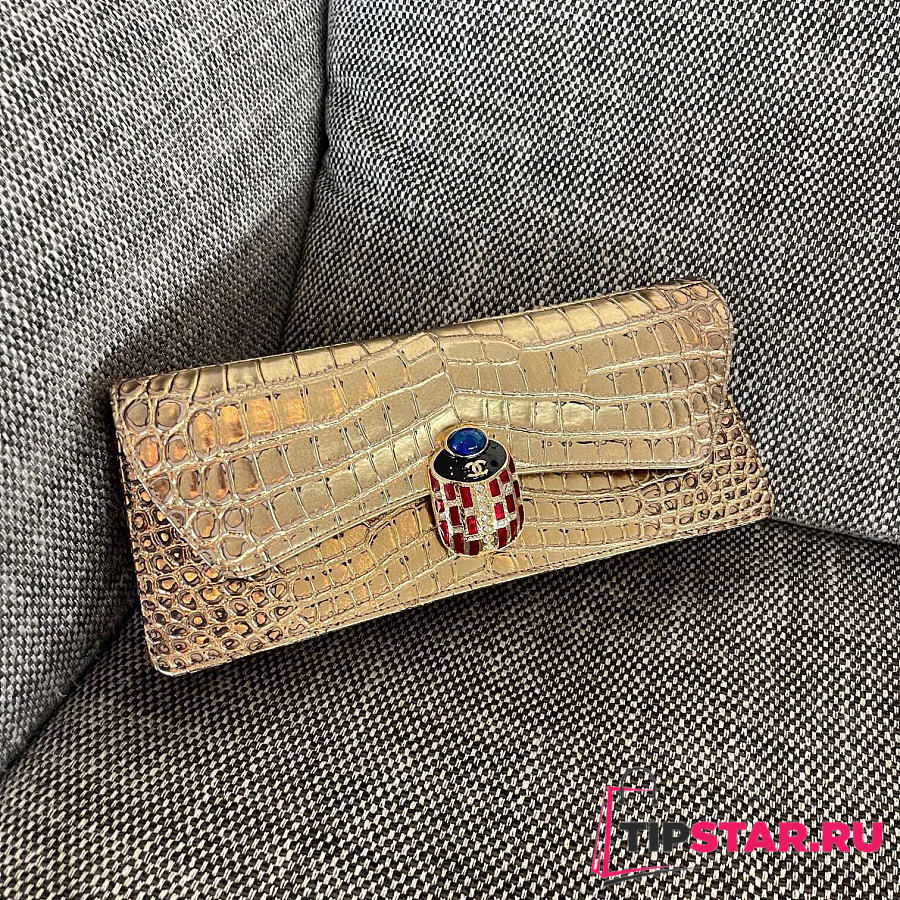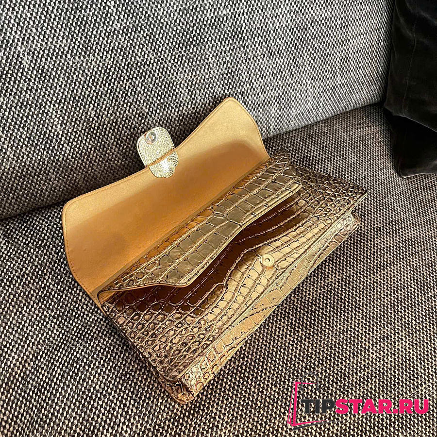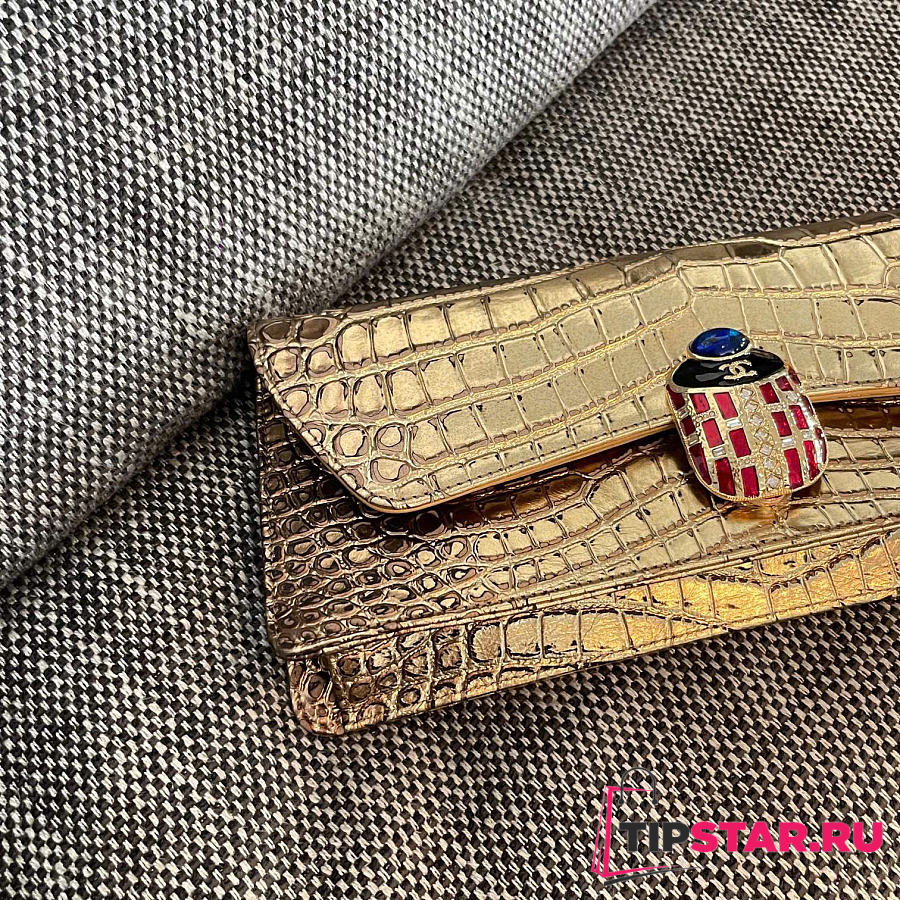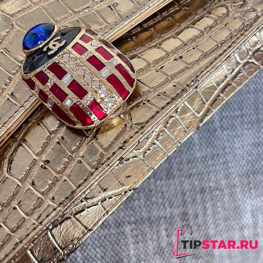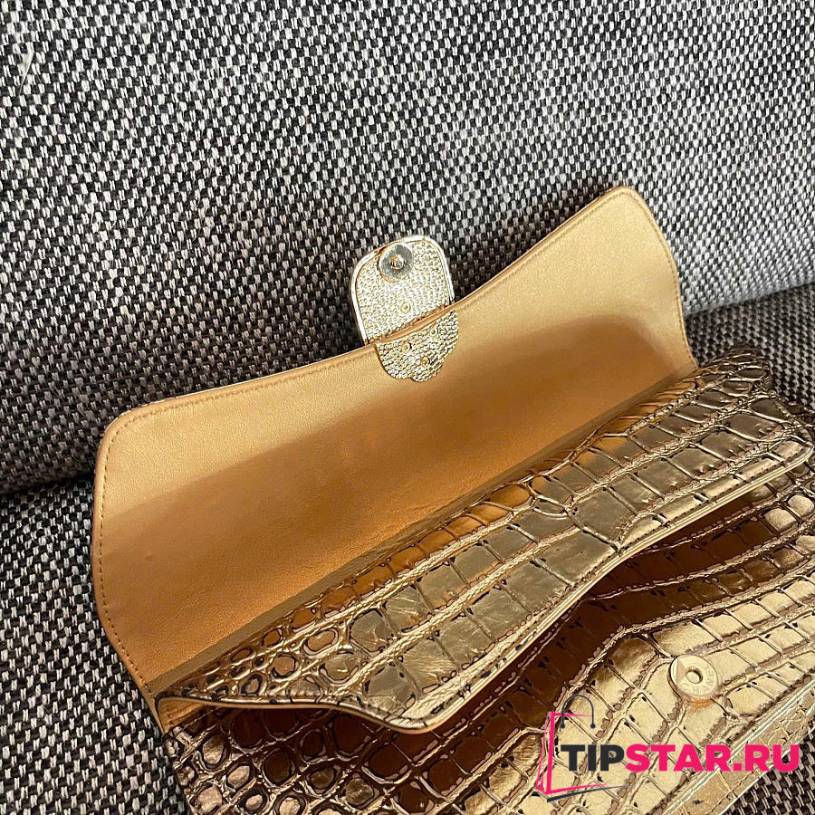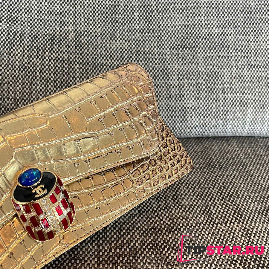 Rare Chanel 19A Crocodile Embossed Gold