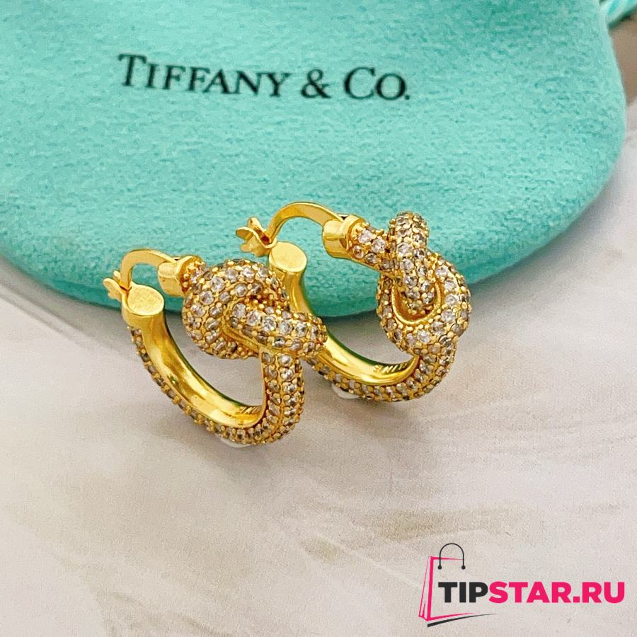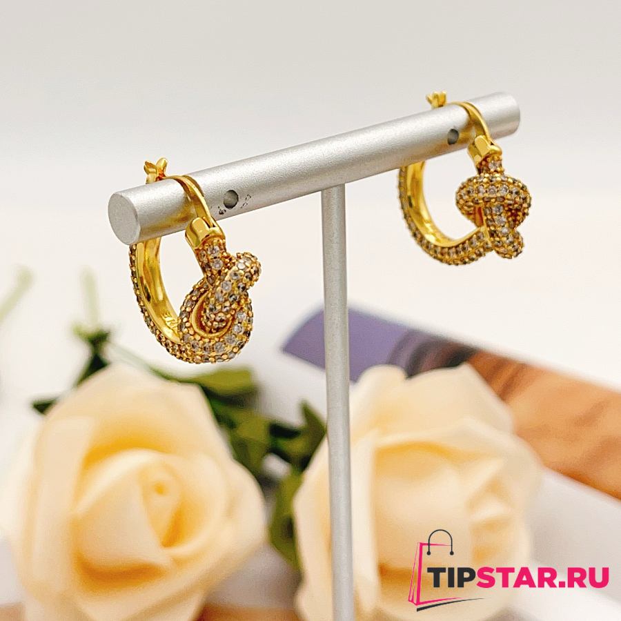Tiffany Knot Pavé Hoop Earrings Gold