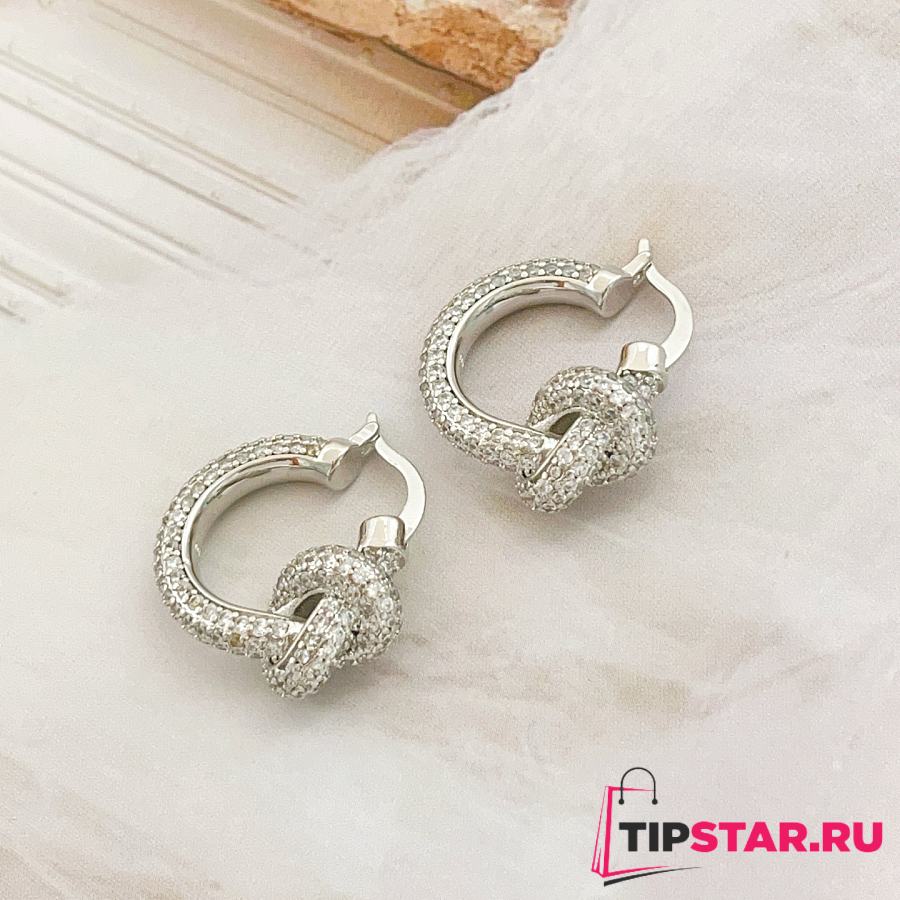 Tiffany Knot Pavé Hoop Earrings Silver