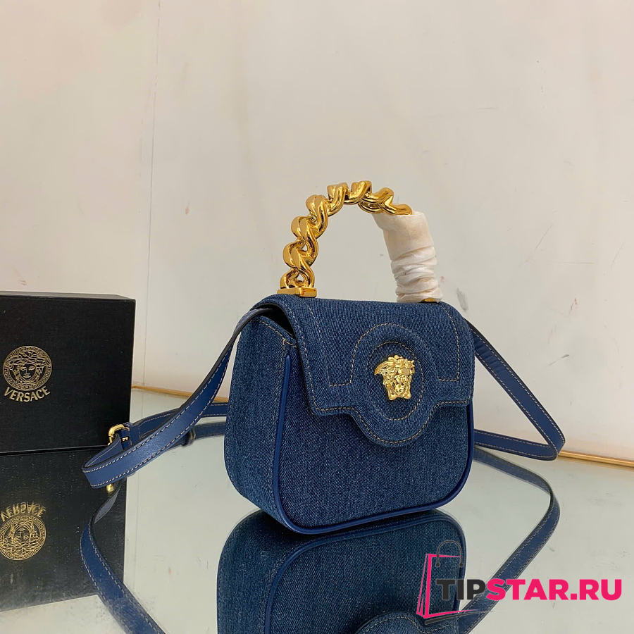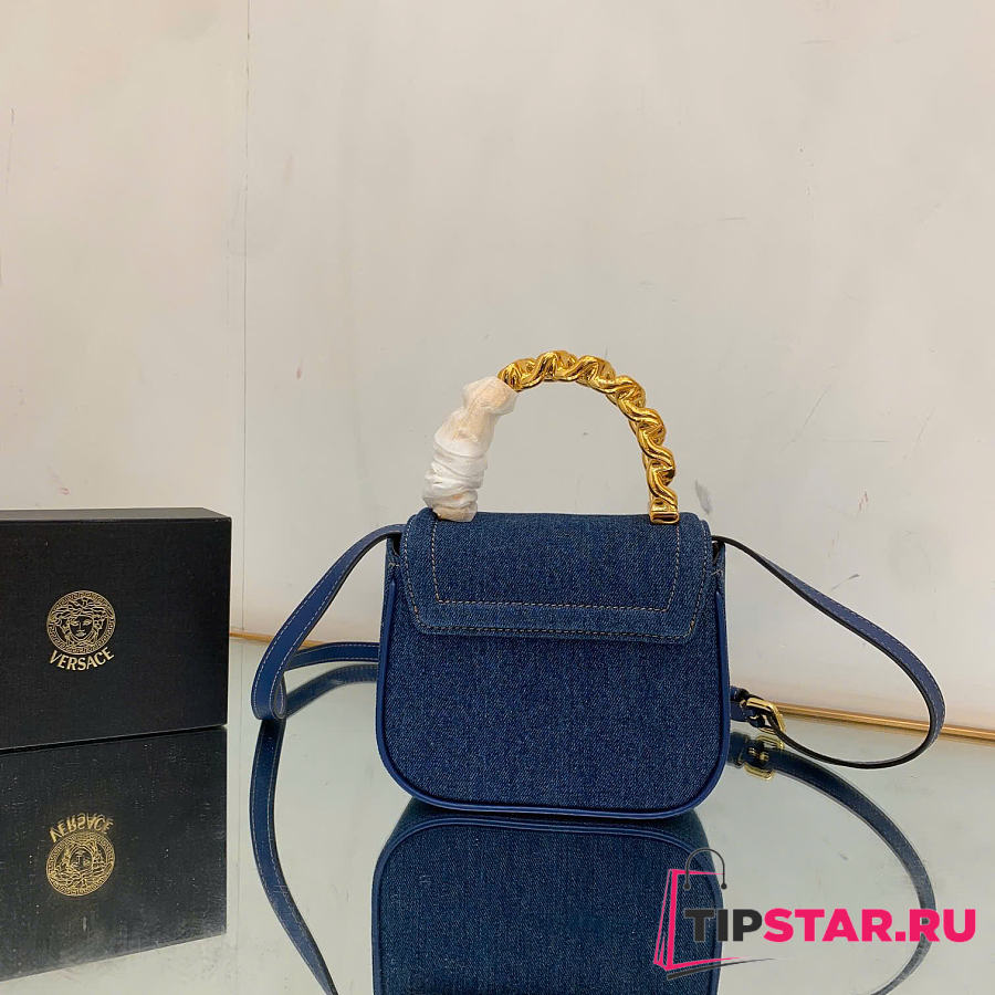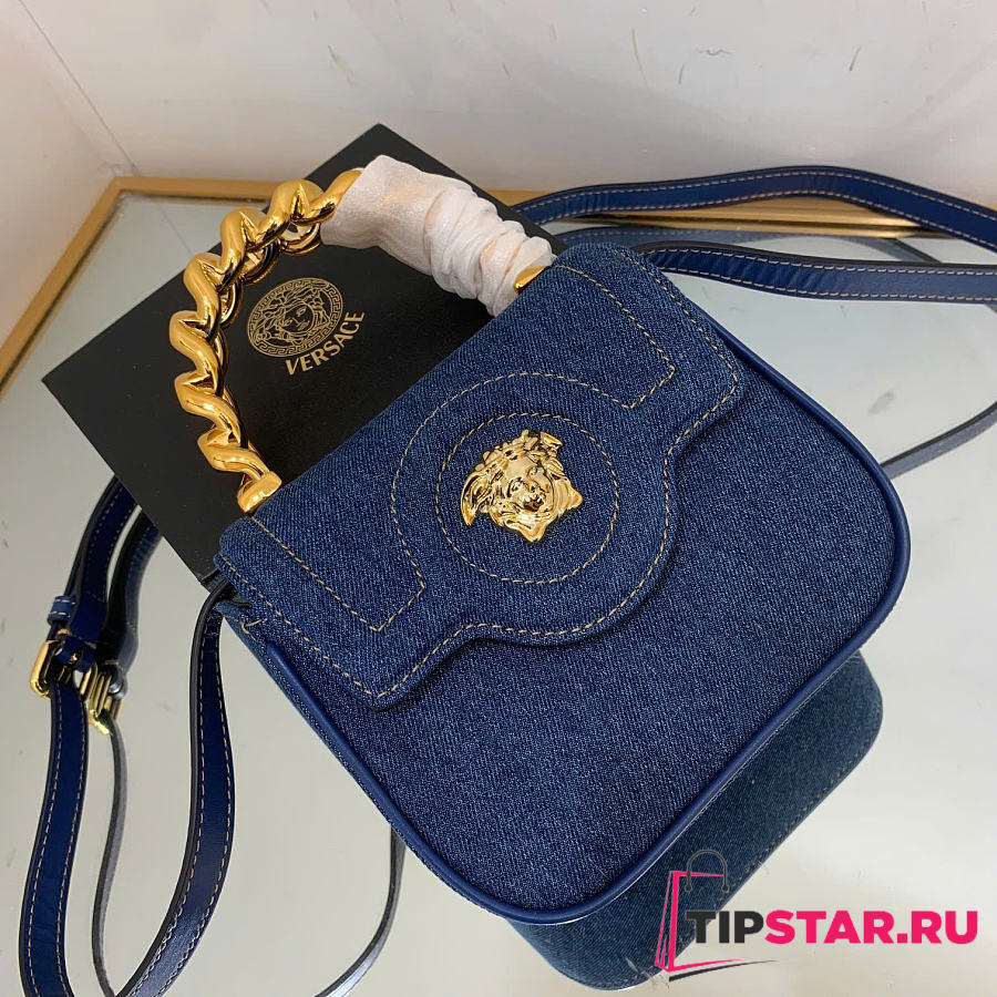 Versace Denim Mini La Medusa Chain Top Handle Bag