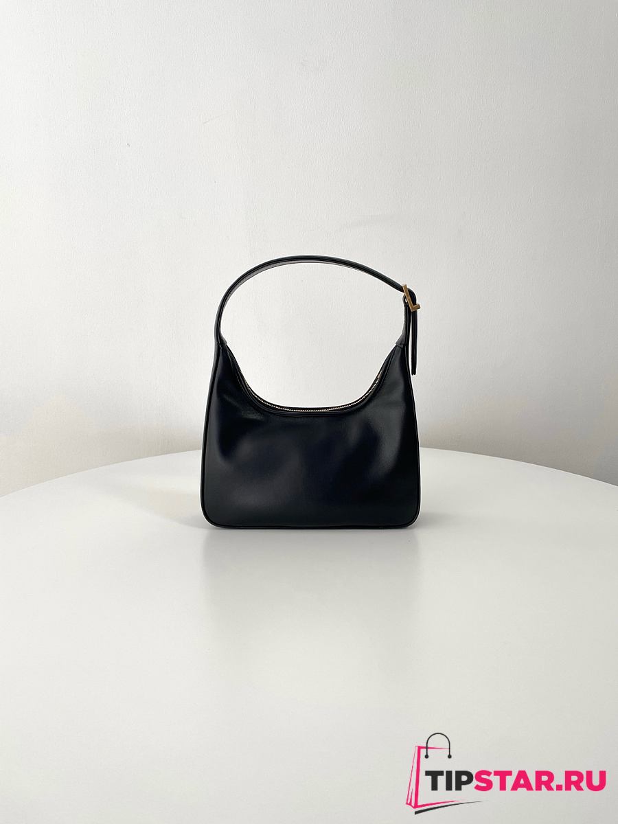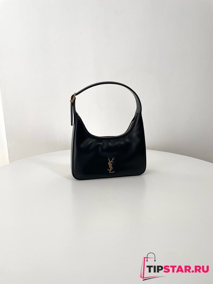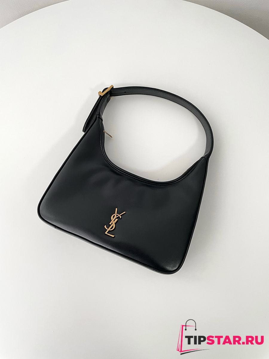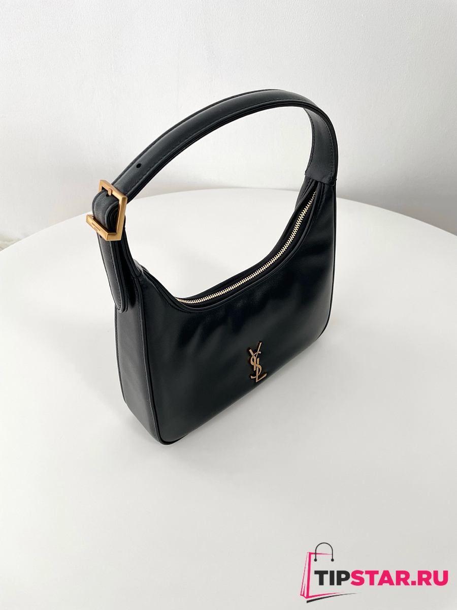 Ysl Calypso Mini Black Plunged Leather Hobo Bag Black