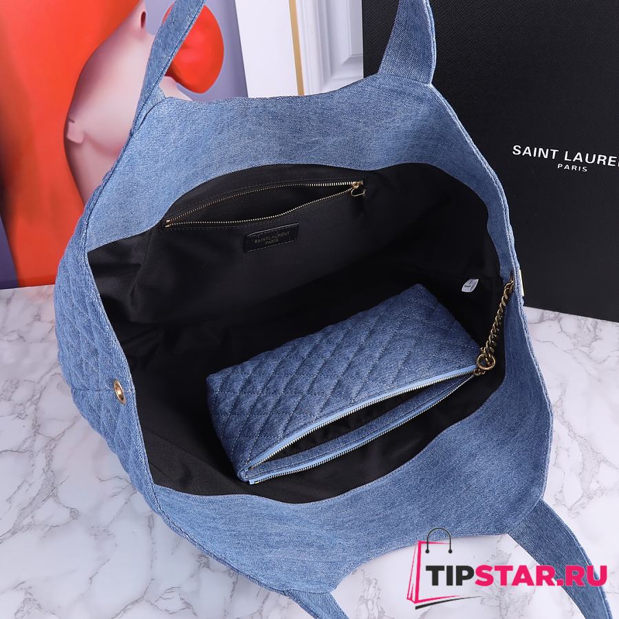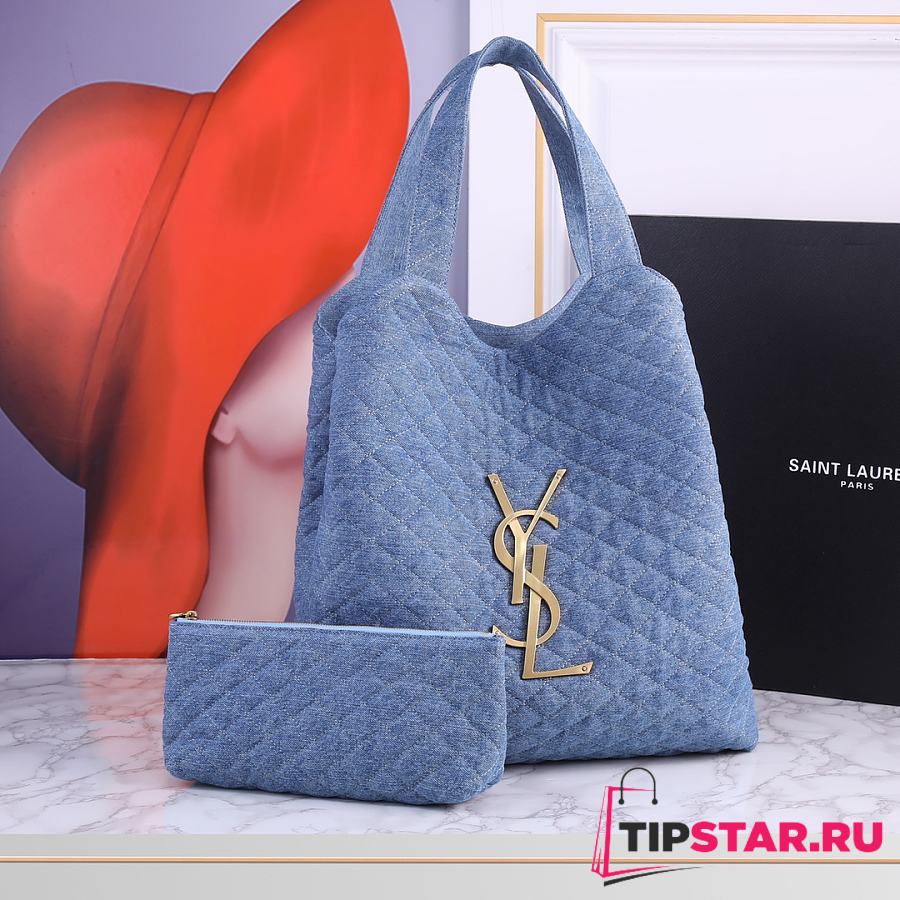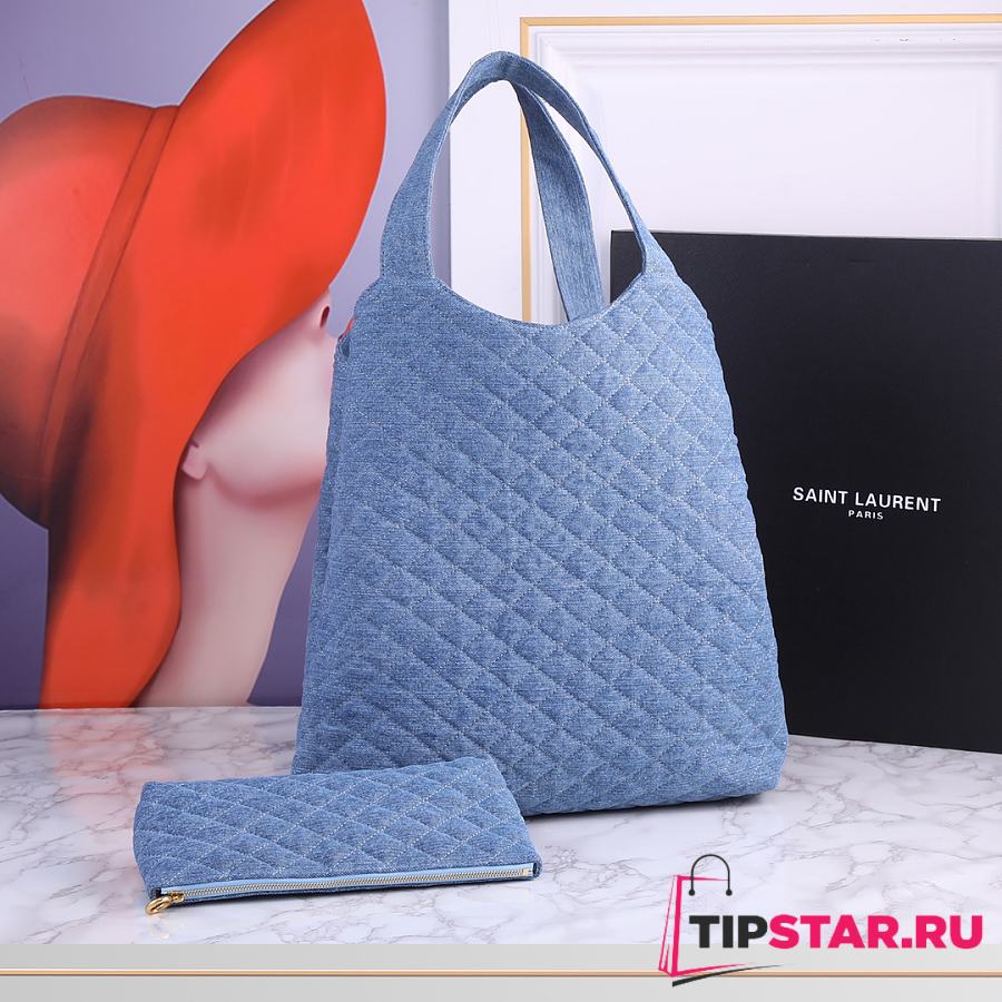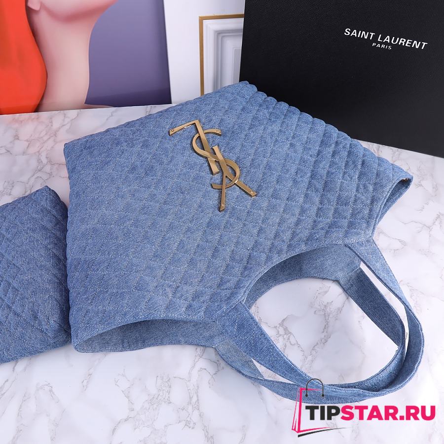 Ysl ICARE Maxi-Shopper aus gestepptem Lammleder Denim Blue