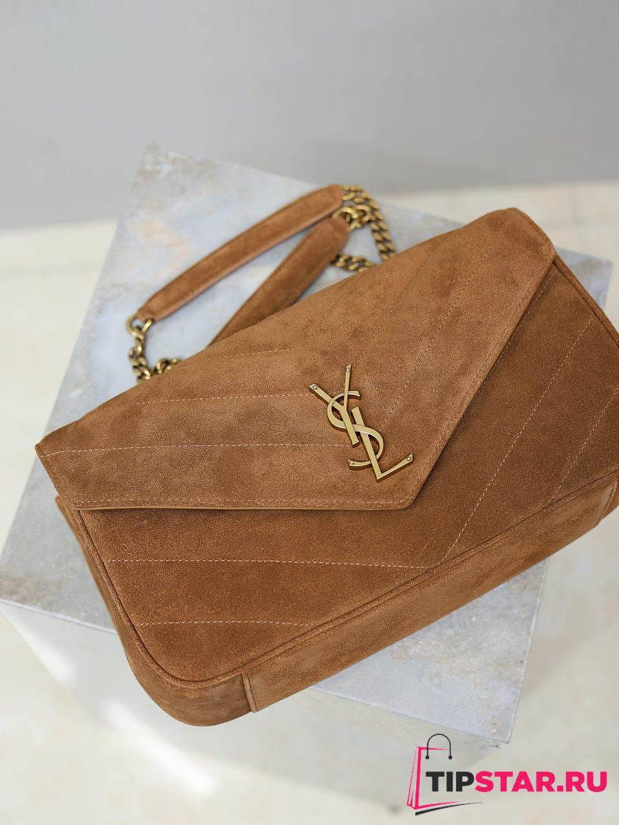 Ysl LouLou suede bag natural tan size 29x17x8 cm