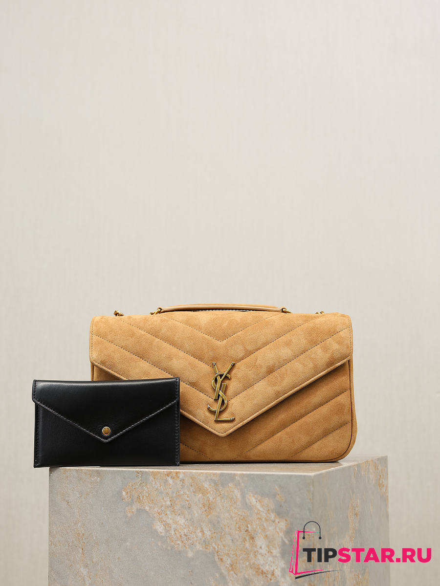 Ysl LouLou suede bag natural tan size 29x17x8 cm