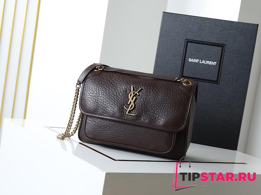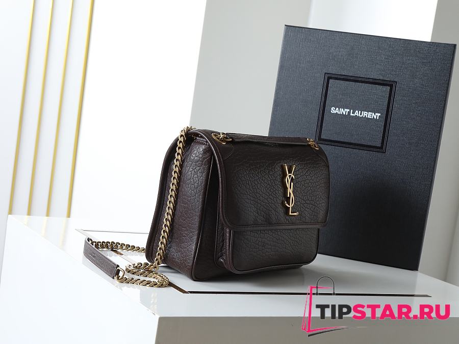Ysl Niki Medium leather shoulder bag gold hardware deep brown