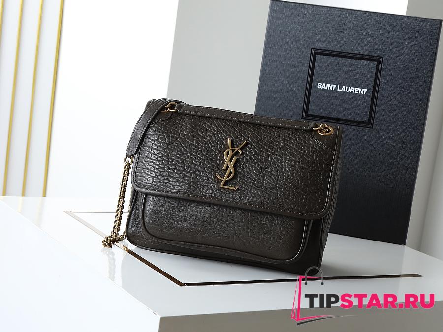 Ysl Niki Medium leather shoulder bag gold hardware khaki