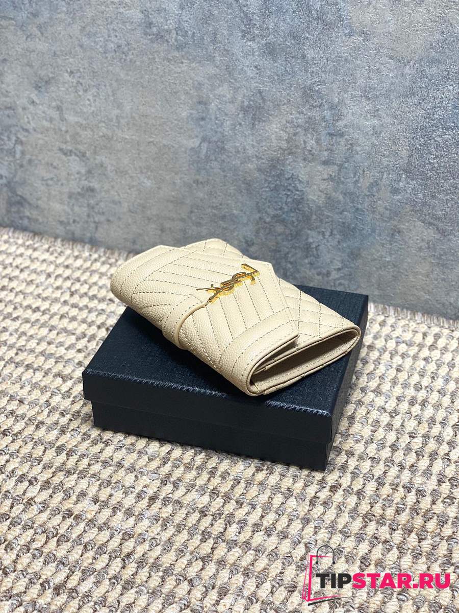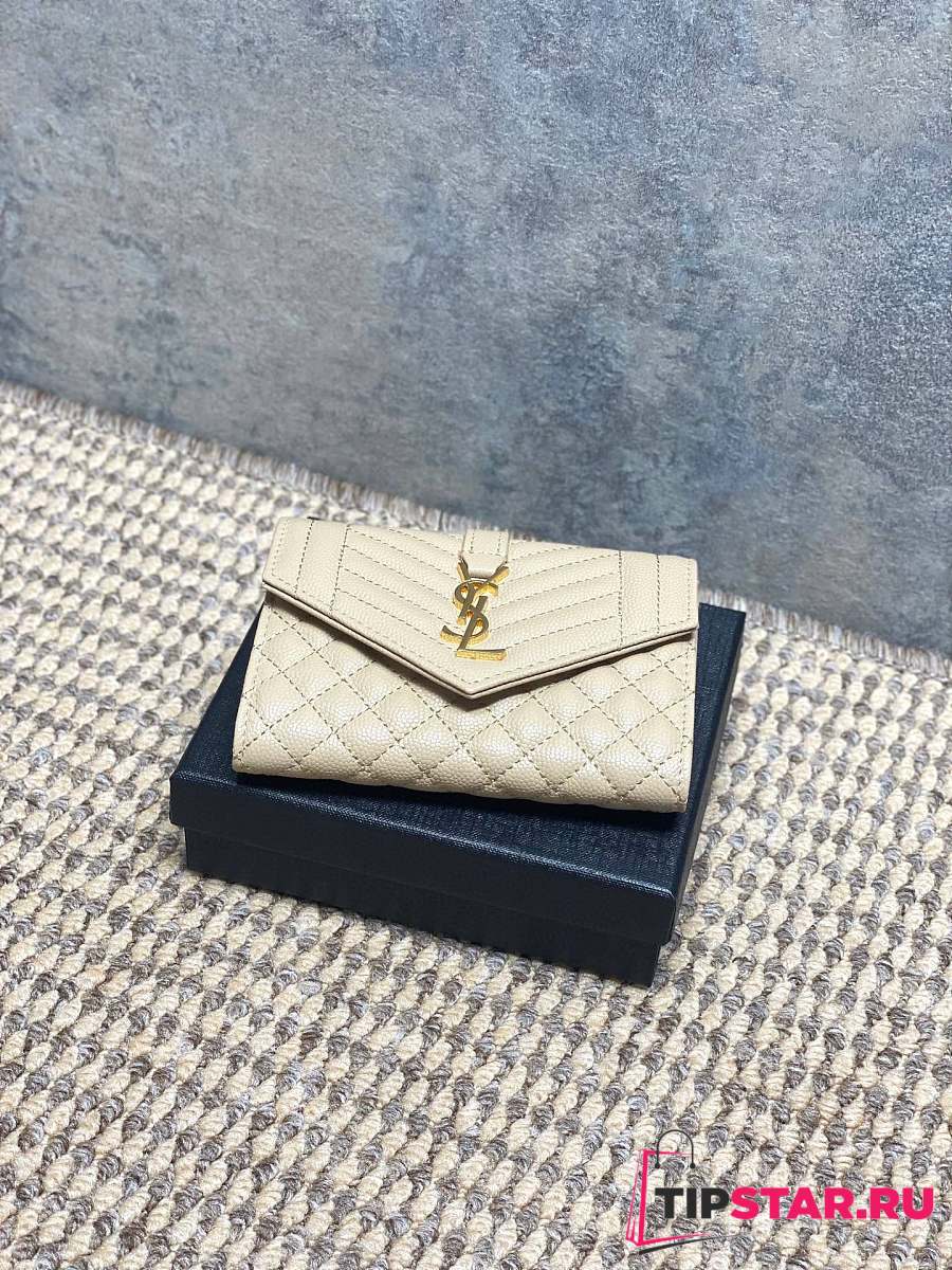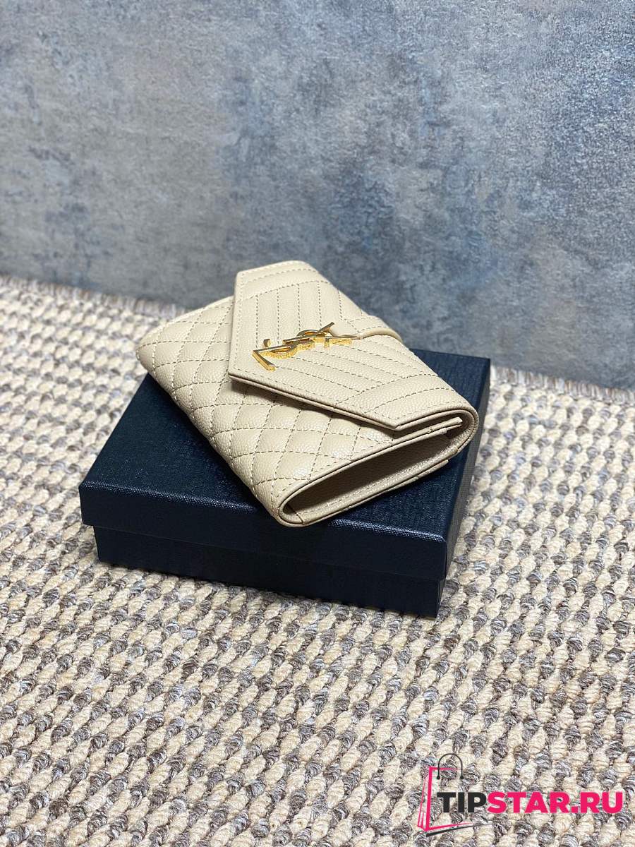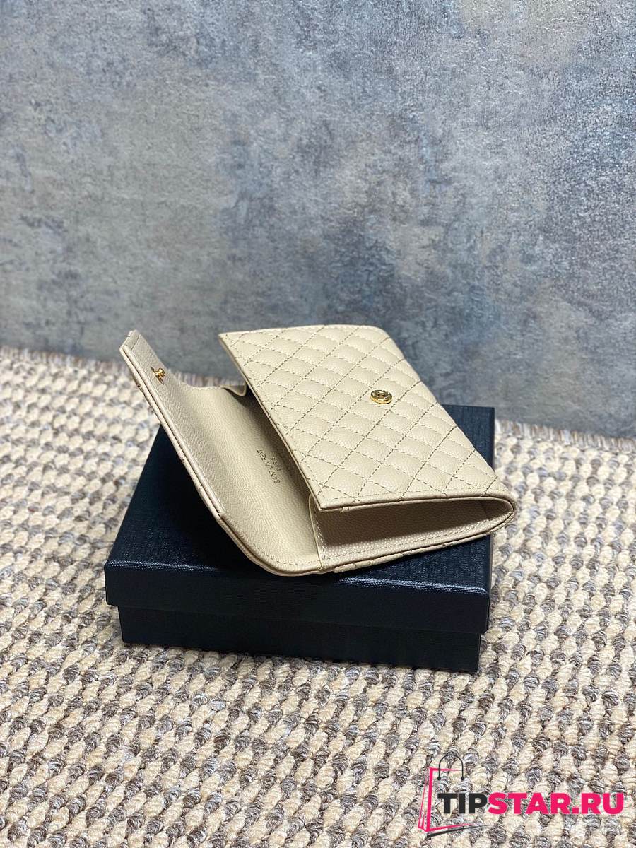 Ysl Quilted Leather Wallet Gold Hardware In Beige