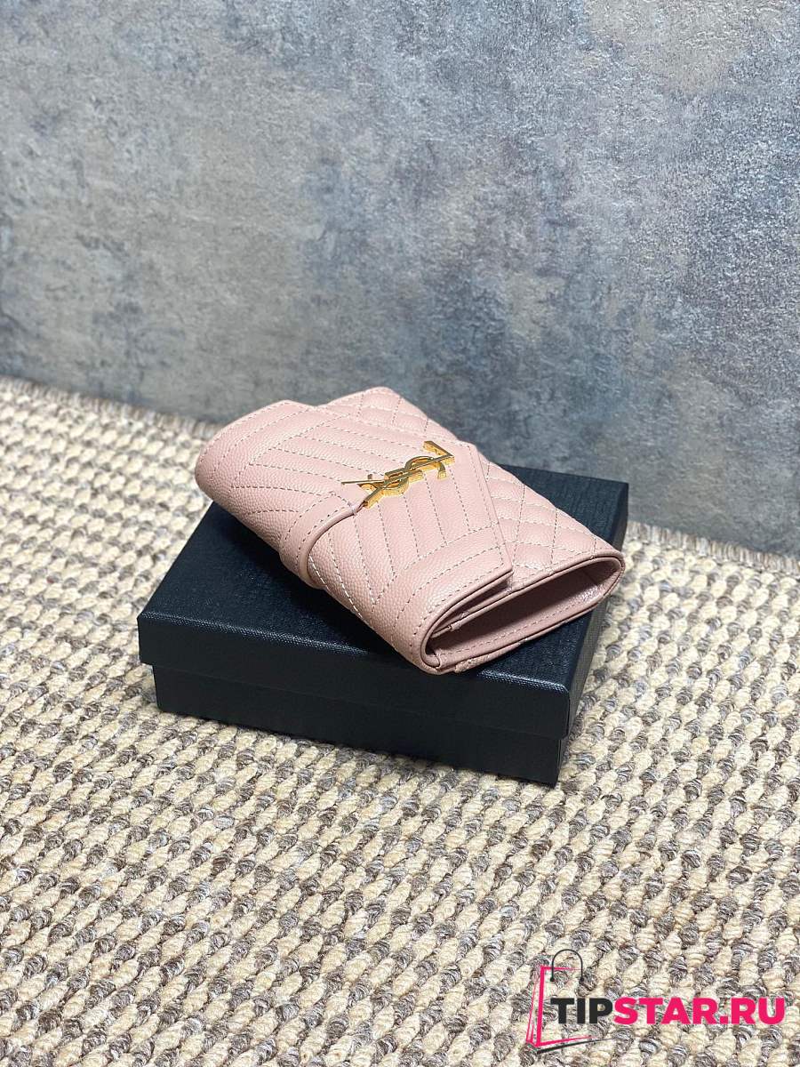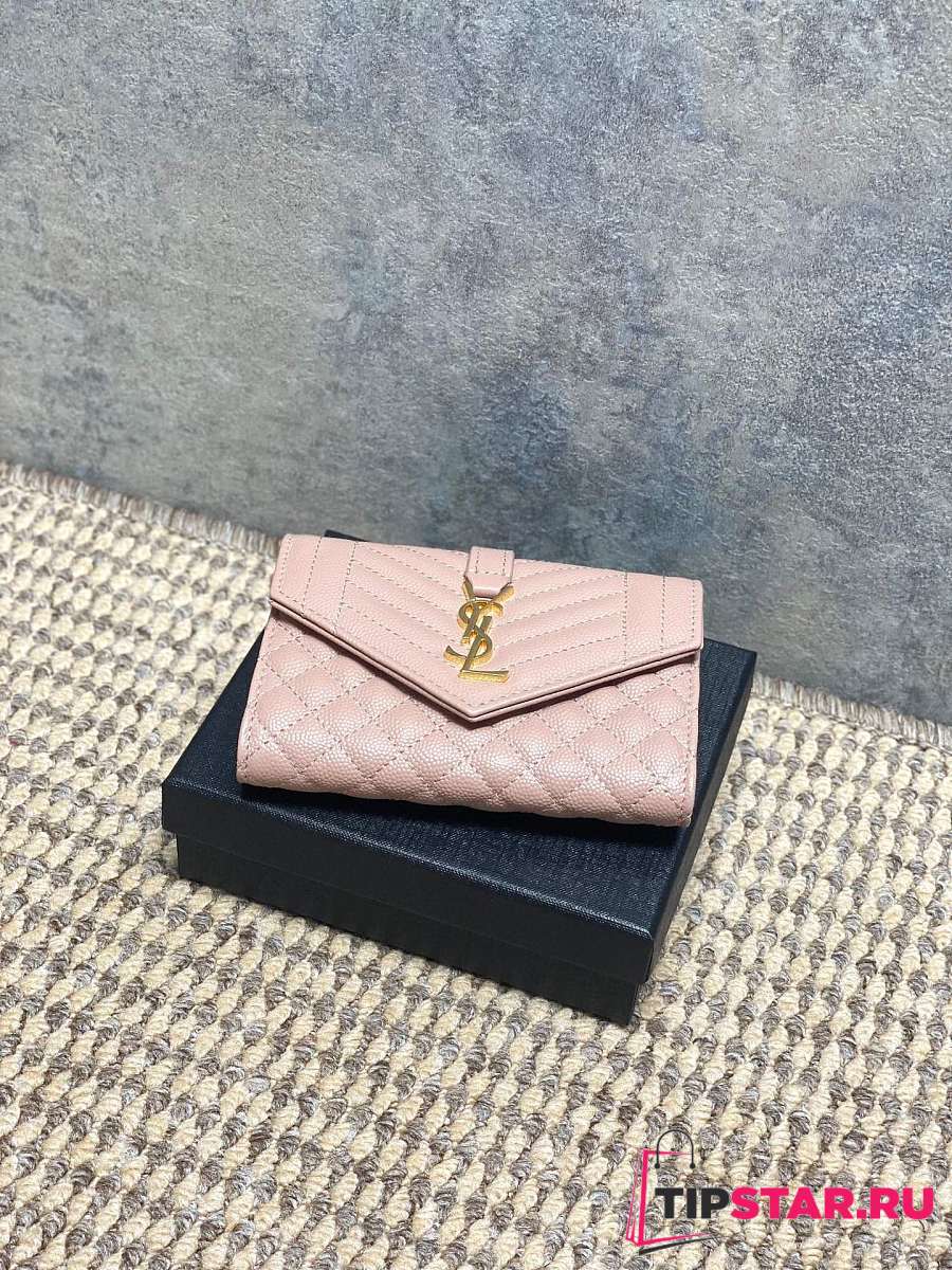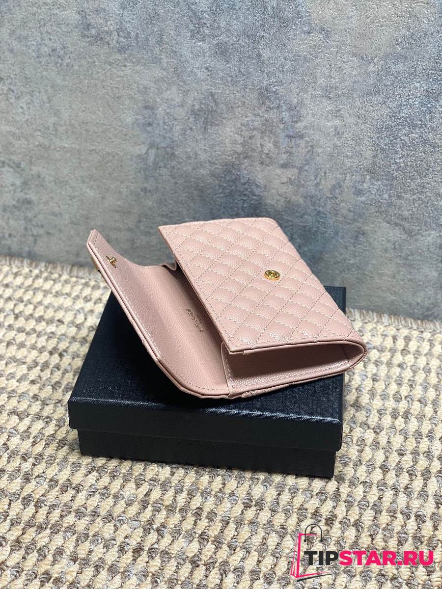 Ysl Quilted Leather Wallet Gold Hardware In Pink