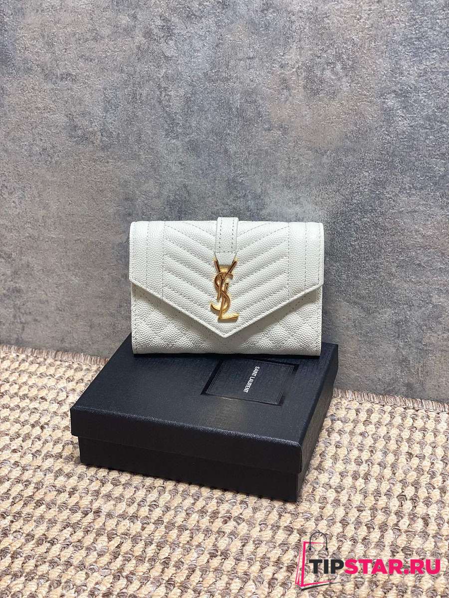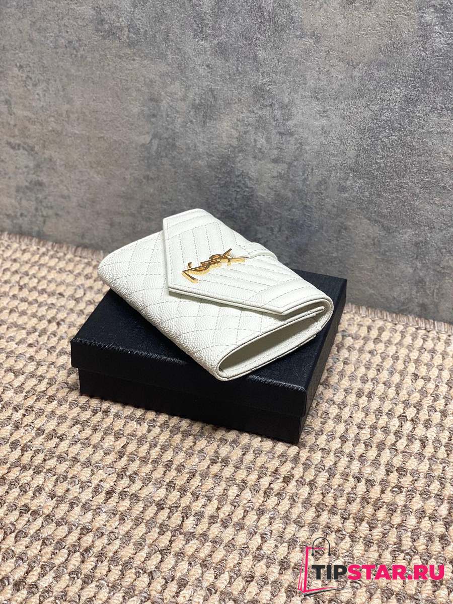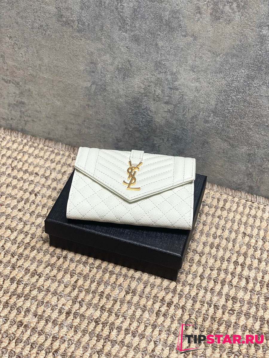 Ysl Quilted Leather Wallet Gold Hardware In White