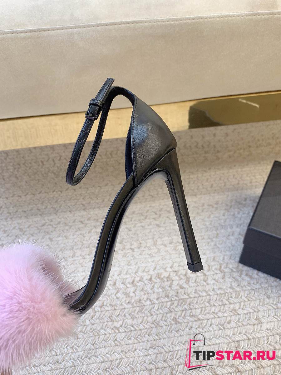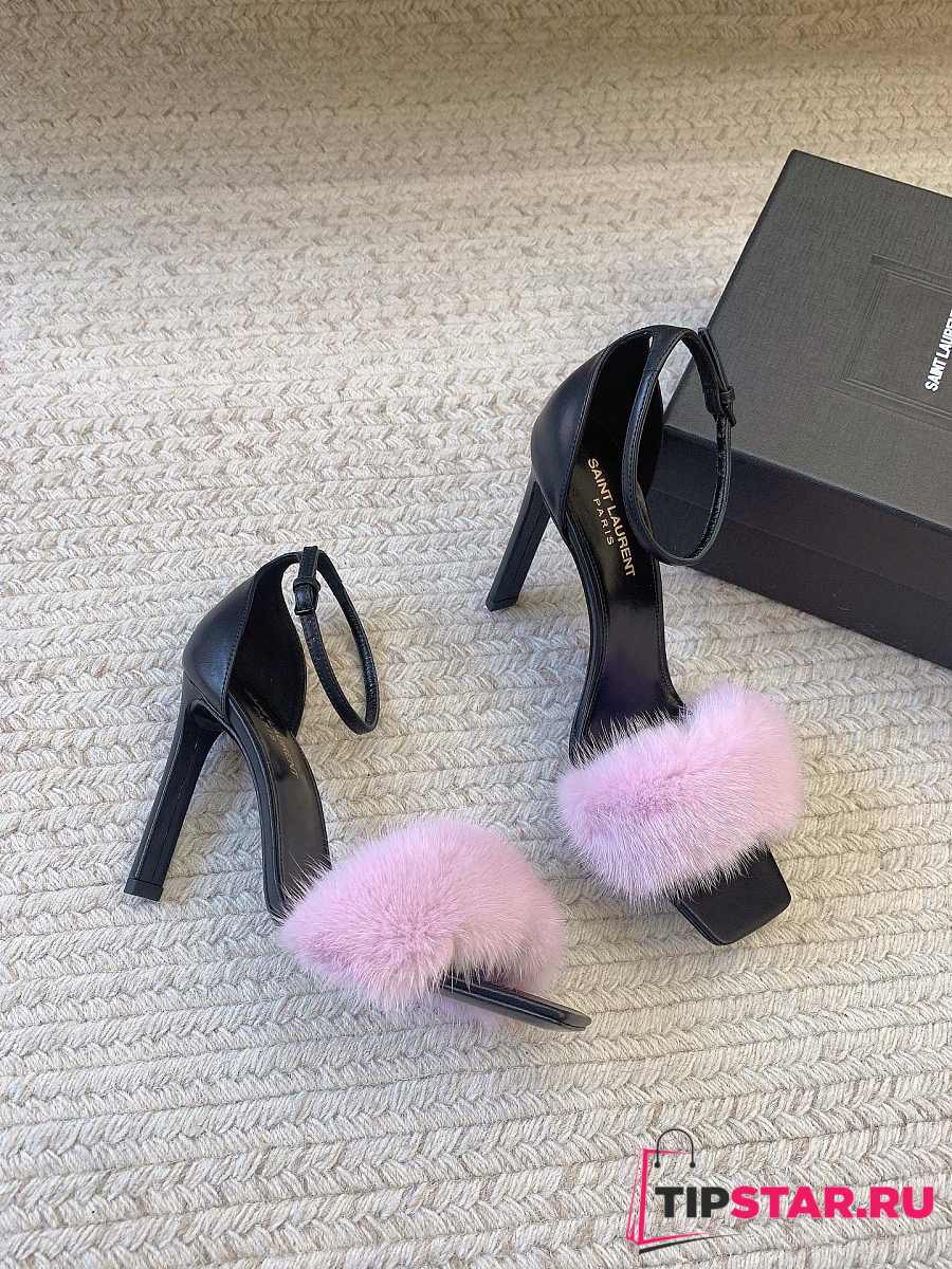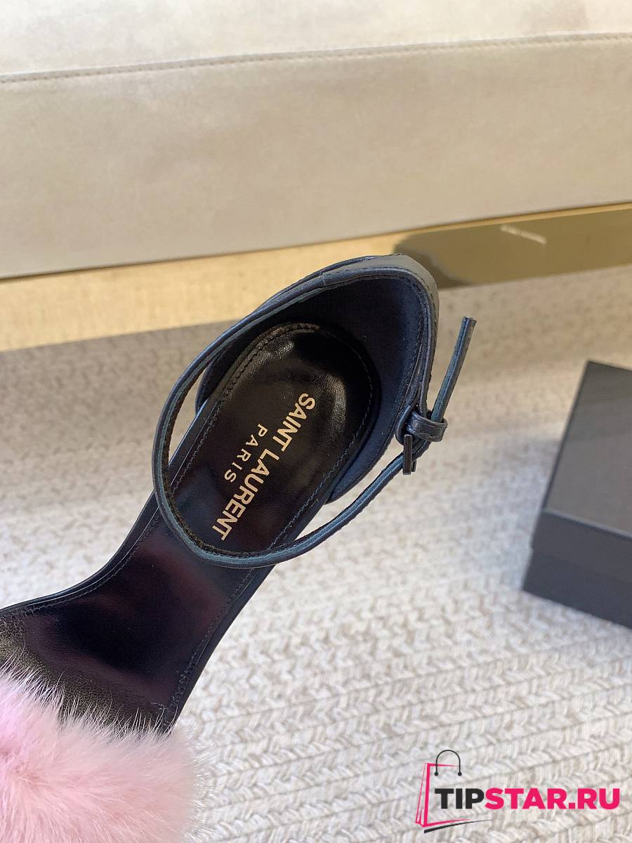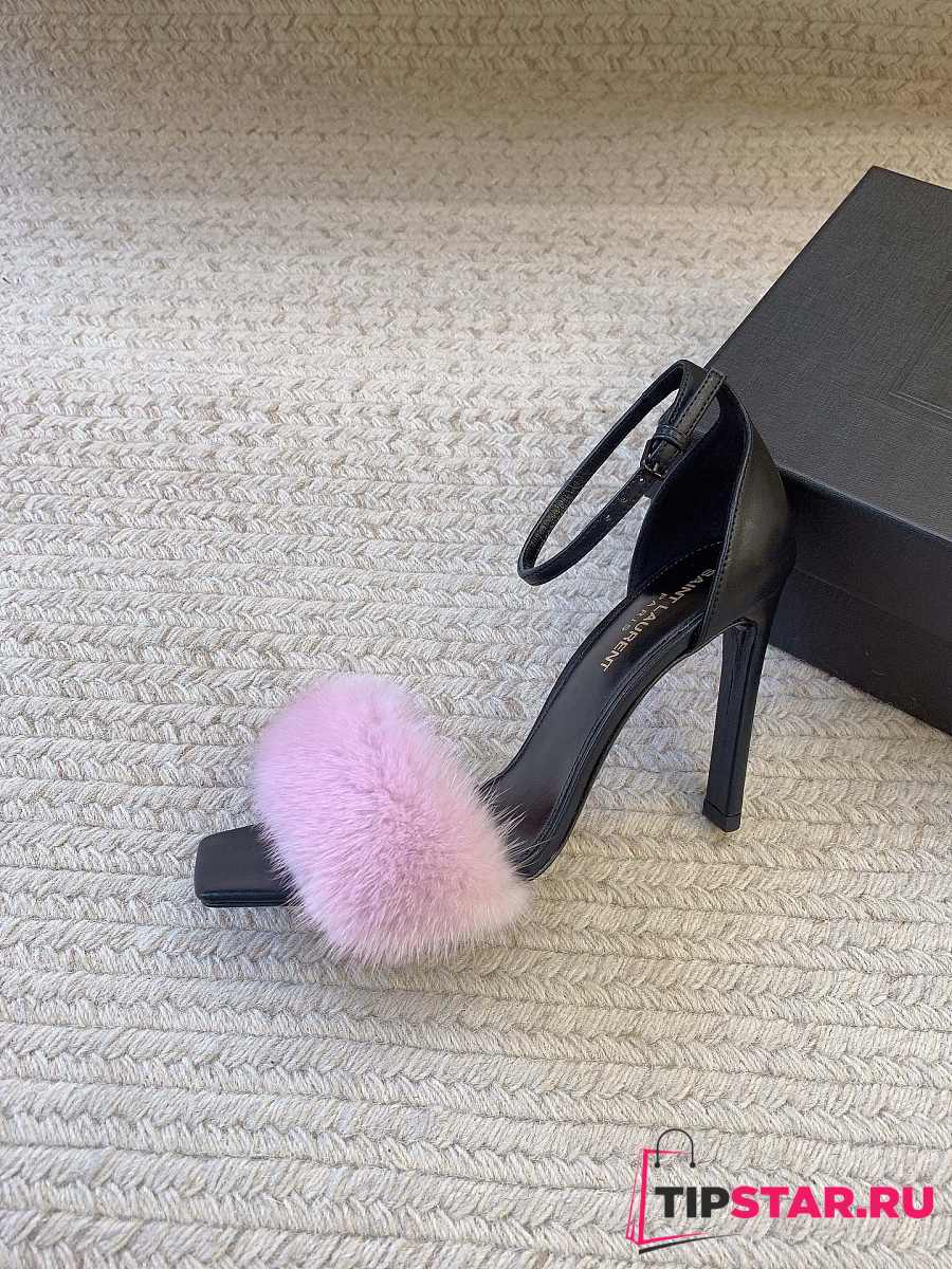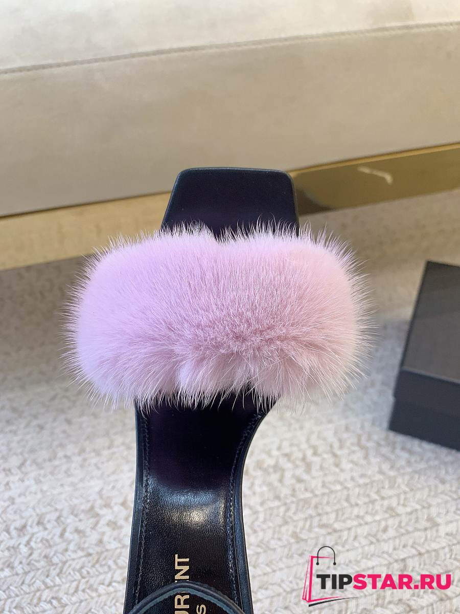 Ysl Saint Laurent Roy Genuine Mink Fur Sandal Pink