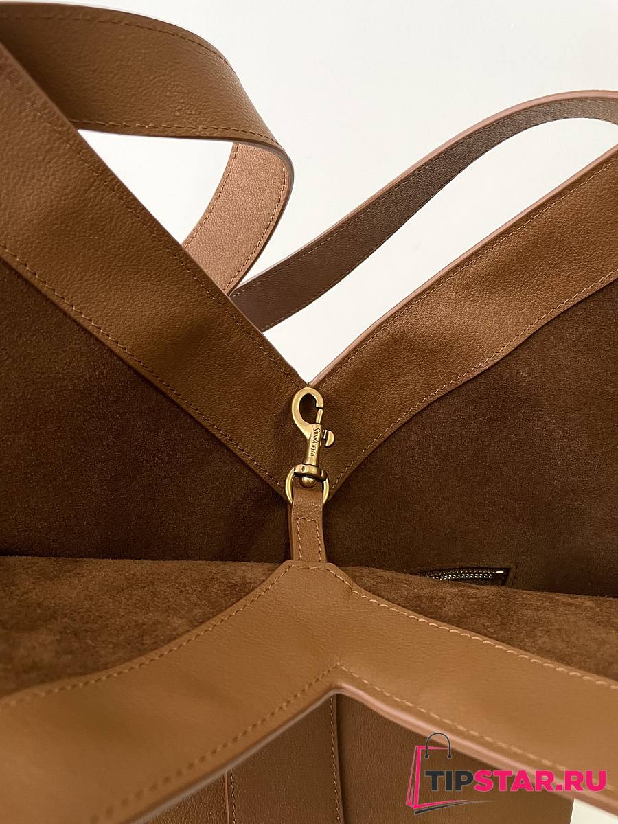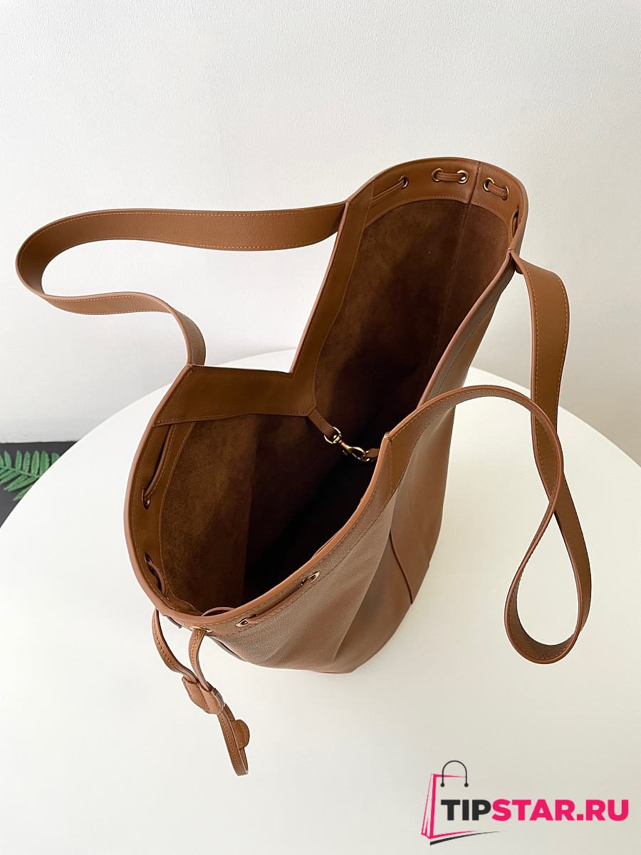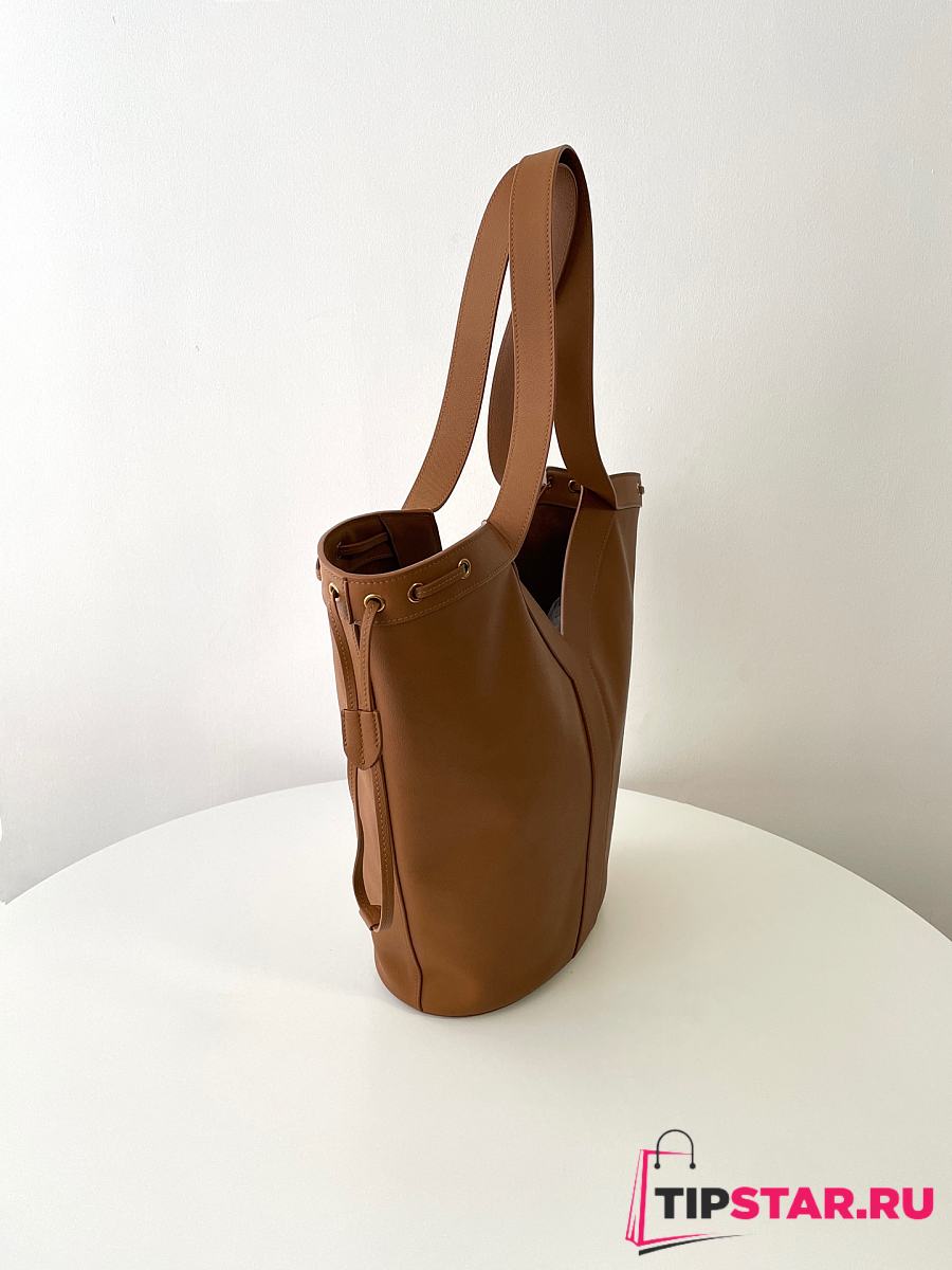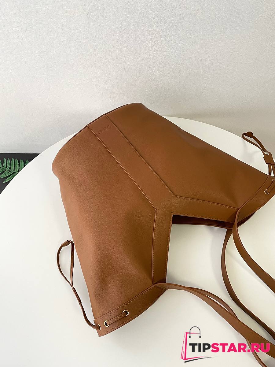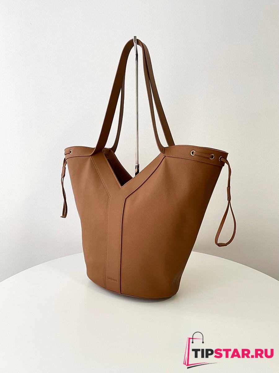 Ysl Saint Laurent Santorini Lux Calfskin Y Drawstring Tote Brown